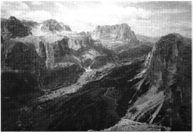 ![]() Unser Quartier, das Alpenhotel „Piz da Lec“ ist nach einem hohen Gipfel in der Sellagruppe, dem Boeseekofel benannt. Wie sich schnell herausstellte, wird das Haus samt zugehörigem Restaurant von sehr freundlichen und entgegenkommenden Wirtsleuten geführt. Schnell hatten wir im Lokal unseren Stammplatz, der jeden Abend für die ganze Gruppe reserviert war, egal oh wir zum Essen oder nur zu einer Besprechung zusammenkamen. Am ersten Abend war es dann soweit. Was machen wir morgen? Wer das riesige Tourenangebot in den Dolomiten kennt, weis was wir hatten wir hatten die Qual der Wahl. Und diese sollte uns die ganze Woche über begleiten. |