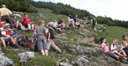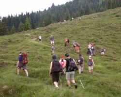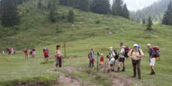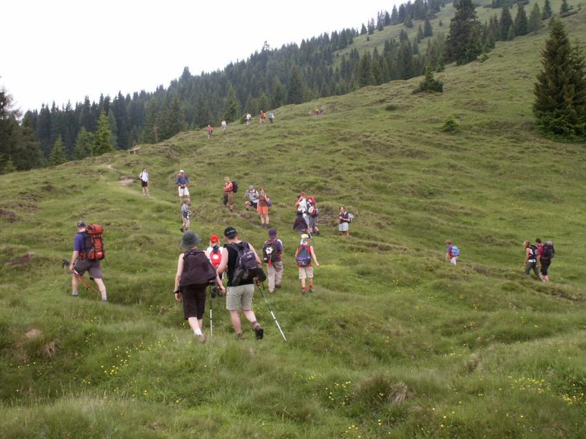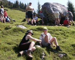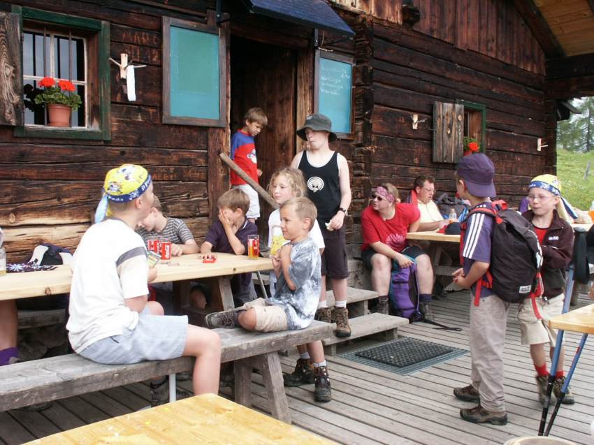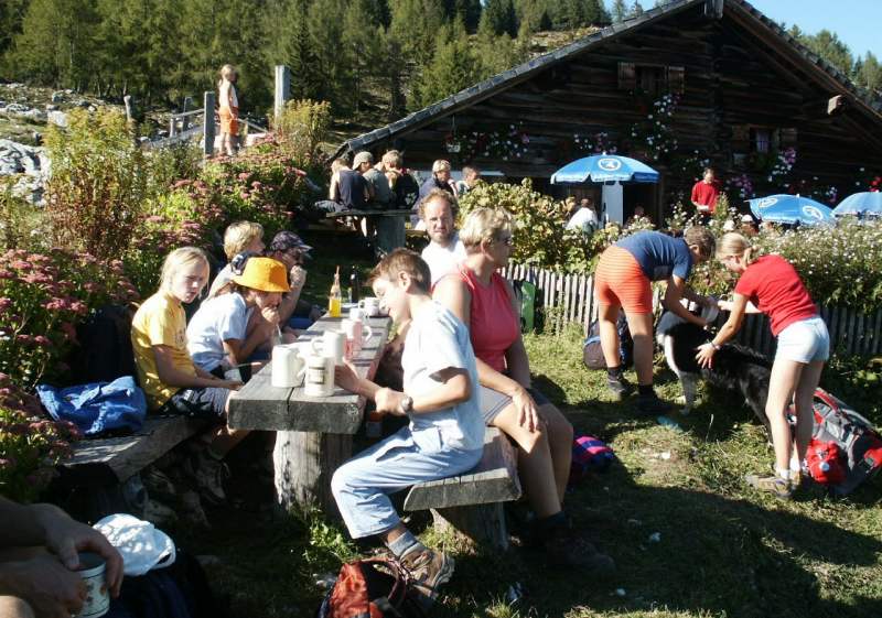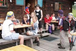 mit anschließendem Abstieg zu meistern. Mit dieser Unternehmung legten wir eine Hammertour hin, worüber so mancher Erwachsene staunte. Dank der Zähigkeit unser hervorragenden Bergwanderer, vornehmlich der Kinder, war der Hin- und Rückweg bei bestem Wetter eine wahre Freude. Beim Hüttenabend mit den Musikern waren alle bester Stimmung, war die Familiengruppe doch als erste angekommen und die Kinder hatten natürlich gleich die besten Lagerplätze erobert.