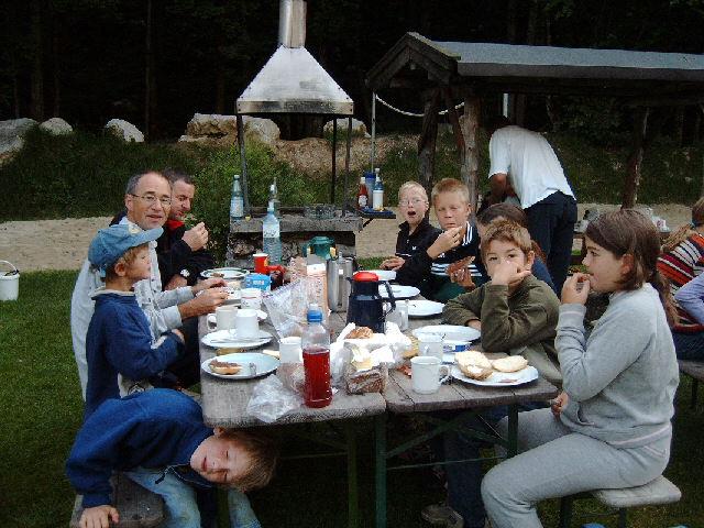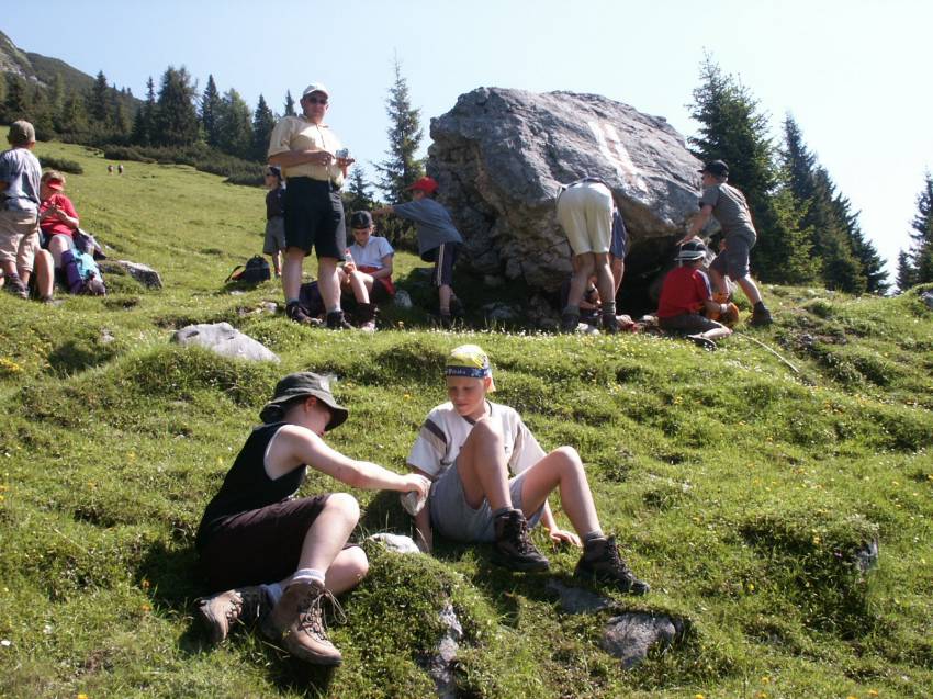 Am nächsten Tag nach dem Frühstück, natürlich im Freien, ging es von Pürzelbach über die Kallbrunnalmen auf den Kuhkranz. Wieder im Lager angekommen wurde sofort Feuer gemacht um endlich unsere Würstel zu braten. Die Kinder tollten derweilen im Lager umher. Am Sonntag machten wir uns noch zur Seisenbergklamm auf, welche wir auf einem Rundweg so richtig knackten. Am Zeltplatz angekommen räumten wir das Lager und machten bevor wir uns auf die Heimreise begaben, noch einen kurzen Abstecher ins Naturbade-gebiet der Vorderkaser-klamm, dass wir vom letzten Jahr schon kannten.