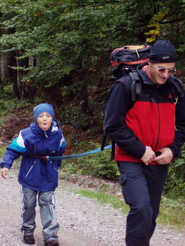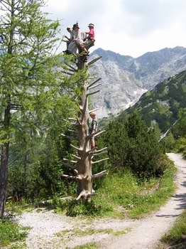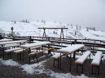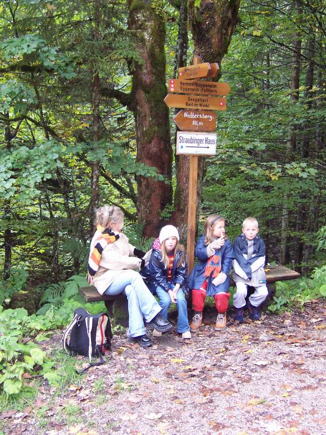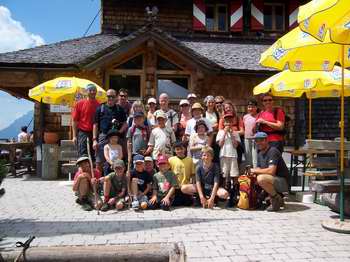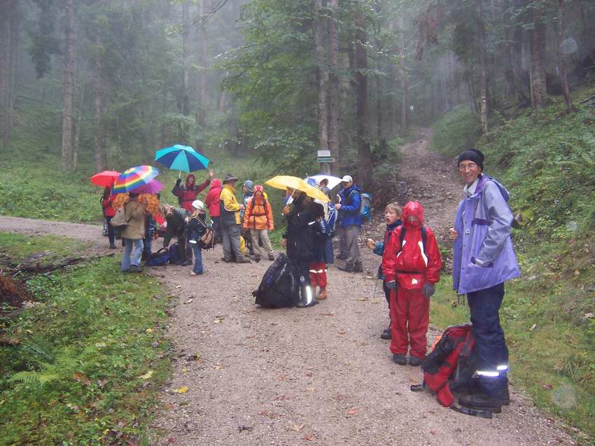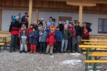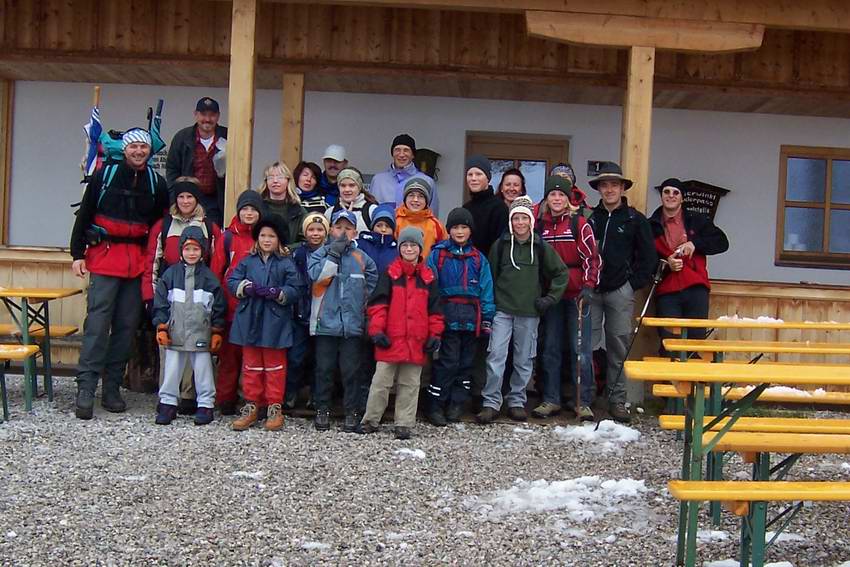 Das Wetter hatte leider kein Einsehen mit unserer Unter-nehmung. So begaben wir uns bei leichtem Regen nach Seegatterl, unserem Ausgangspunkt der dies-jährigen Familienabschlussfahrt. Neun Familien teilten die Hoffnungen der Tourenleiter auf eine Wetterbesserung. So stiegen wir in Regensachen gehüllt und mit Regenschirmen bewaffnet dem Straubinger Haus entgegen. Nach ca. 3½ Stunden Aufstieg, fanden wir eine verschneite Landschaft vor. Die Kinder waren von dem Schnee so begeistert, dass kurzerhand eine Schneeballschlacht ins Leben gerufen wurde. An der Hütte angekommen wurden wir von einem netten Wirt in Empfang genommen. Die gut beheizten Räumlichkeiten taten uns nach diesem Marsch gut. Von den Kindern wurden gleich die Lager unter Beschlag genommen - aber nicht zum Schlafen, denn dort ging es noch lange sehr lustig zu. Am Abend ließen wir das Bergjahr 2004 gebührend mit Spielen und Livemusik ausklingen. Nach dem Frühstück am nächsten Tag, machten wir uns gestärkt und bei besserem Wetter an den Abstieg. Nach ca. 2½ Stunden kamen alle wieder am Parkplatz in Seegatterl, an. Respekt auch an die etwas Kleineren, die den Auf- und Abstieg bravourös meisterten. Auf der Heimfahrt konnten wir bei Ruhpolding noch einen Almabtrieb erleben.