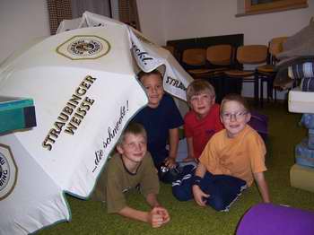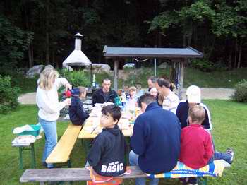 Der von den Kindern schon sehnlichst erwartete Höhepunkt der Saison war endlich da - unser Zeltlager. Neun Familien mit ihren Zelten waren dabei. Nach dem Aufbauen der Zelte und dem Abendessen nutzten alle den lauen Sommerabend für Spiele oder einen gemütlichen Ratsch am Lagerfeuer. Am Samstag nach dem Frühstück fuhren wir nach Saalfelden. Von diesem Ausgangspunkt aus stiegen wir über einen schattigen Weg zur Peter-Wiechentaler-Hütte (1 752 m) . Die Brotzeit schmeckte auf der Hütte bei bestem Wetter natürlich doppelt gut. Schließlich hatten wir uns diese nach dem kräftezehrenden Anstieg von ca. 900 Höhenmeter auch verdient. Auf dem Anstiegsweg ging es auch wieder ins Tal zurück. Abends war noch Lagerfeuer und Grillen angesagt. Der Sonntag wurde noch für einen Ausflug zum Baden in das Naturbadegebiet Vorderkaserklamm genutzt. Der Höhepunkt des Tages war allerdings die Überquerung des Badesees auf einer von den Vätern mit vereinten Kräften gebauten Seilbrücke, was für alle eine Mordsgaudi war. Auf dem Heimweg fragten die Kinder: „Und fahren wir nächstes Jahr wieder hierher?”