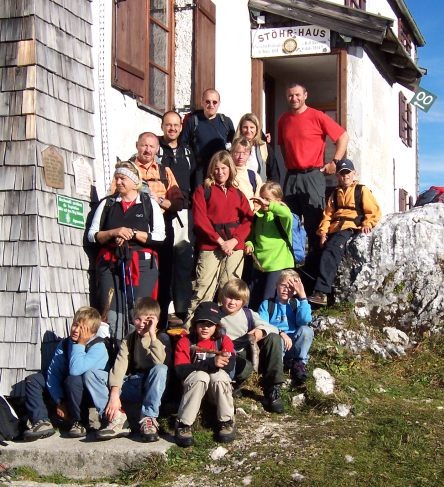 Um unsere Kräfte zu schonen absolvierten wir diesmal den Aufstieg zum Geiereck (1 805 m) von St. Leonhard aus mit der Seilbahn. Oben angekommen wanderten wir zum Salzburger Hochthron und über die Mittagsscharte zum Berchtesgadener Hochthron (1 972 m) . Unter-wegs hatten wir ausreichend Zeit für Pausen, welche die Kinder für Spiele und zum Beobachten der Gemsen nutzten. So manche Eltern und auch die Tourenleiter nutzten dies zu einem kleinen Nickerchen. Am Stöhrhaus ange-kommen waren leider der versprochene Sonnen-untergang und der Ausblick nicht so grandios, was der guten Stimmung aber keinen Abbruch tat. Nach dem Aufklaren über die Nacht hinweg, war am nächsten Morgen bestes Wetter angesagt. So genossen wir den Abstieg bei Sonnenschein und unten angekommen noch eine Kaffee-pause. Bei dieser Mehrtagestour beteiligten sich fünf Familien (15 Personen).
