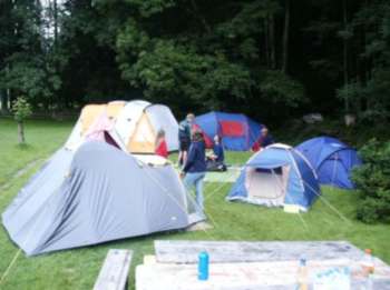 Nun schon zum dritten Mal fuhren wir voller Freude ins Zeltlager nach Weißbach bei Lofer. Nach dem Aufbauen der Zelte und dem Abendessen war noch ausreichend Zeit für Spiele und einem gemütlichem Ratsch am Lagerfeuer. Leider wurde dieser Abend durch den einsetzenden Regen unter-brochen. Am nächsten Morgen, der Regen hatte wieder aufgehört, fuhren wir nach Zell am See zur Jausenstation Mitterberghof 1 189 m , dem Ausgangspunkt unserer Wanderung zur Schwalbenwand (2 011 m) . Die Schwalbenwand war für uns nicht genug. Wir gingen am Grat entlang noch zum Schönwieskopf (1 994 m) . Beim Abstieg machten wir noch eine gemütliche Einkehr auf einer urigen Alm. Am Zeltplatz angekommen warteten bereits Marcel Kießling, unser Vorstand, und Martin Bruckmeier der Jugendleiter auf uns. Die Kinder nahmen beide sogleich für Spiele in Beschlag, nachdem sie Marcel das Zelt aufgebaut hatten. Bei einem gemütlichen Grillabend ließen alle den Tag ausklingen. Am Sonntag nach dem Frühstück war es dann soweit, es ging in den Klettergarten. Mit Seil, Klettergurt und Helm wurden unter fachkundiger Anleitung von Marcel und Martin die ersten Kletterversuche im Fels unternommen. Was alle Kinder und auch einige Mütter und Väter begeisterte. Die Zeit verging wie im Flug und schon war das Wochenende viel zu schnell vorbei, an dem sich sieben Familien (27 Personen) beteiligten.
