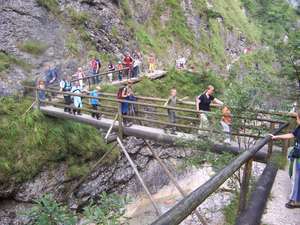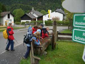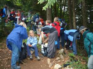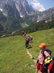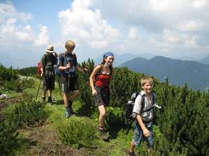 Der Rest der Gruppe, immer noch 27 Personen, machte sich auf in die Strohwollnschlucht und auf das Große Hundshorn. Auch bei dieser Tour war wieder Schwitzen angesagt, waren doch gut 1 100 Hm bei Sonne zu meistern. Bei mäßigen Tempo und ausreichend Pausen war das auch von den Kleinen und den Großen zu schaffen. Wem es nach der Rückkehr noch zu heiß war, der konnte sich in der Saalach ja abkühlen. Abends beim Grillen und am Lagerfeuer war von Erschöpfung nichts mehr zu merken. Am Sonntag nach dem Frühstück und dem Abbau der Zelte ging es in den Klettergarten oder zum Baden in die Vorderkaserklamm.
