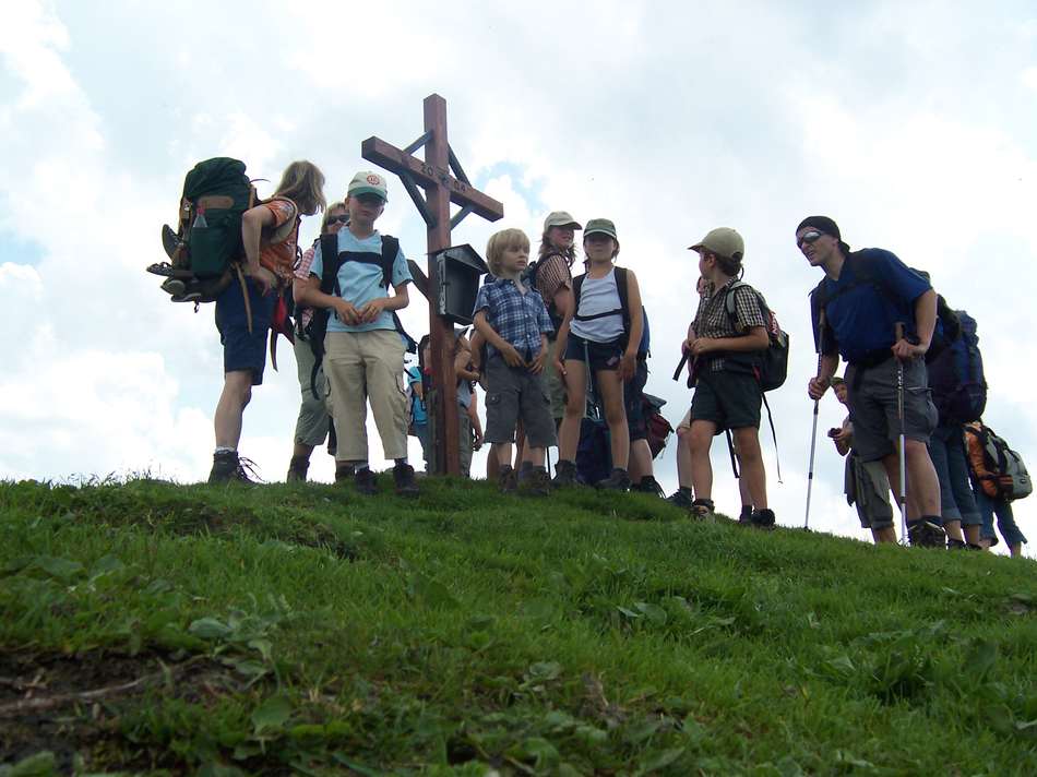 Etwas verspätet machte sich die Gruppe von 35 Personen auf den schweißtreibenden Weg von der Fischbachalm über den Feldberg zum Stripsenjochhaus. Am Scheibenbühel trafen wir dann unseren Jugendleiter Martin, er war wohl im Stau steckengeblieben und wir konnten die Gruppe wie geplant aufteilen. Endlich am Ziel, erschöpft aber froh, gab es zwei wichtige Fragen: „Wo ist die Dusche?“ und „Gibt es einen Fernseher?“ (Fußball). Nachdem unsere Jungs (die Fußballer natürlich!) gewonnen hatten, konnten wir das Feuer entzünden.