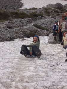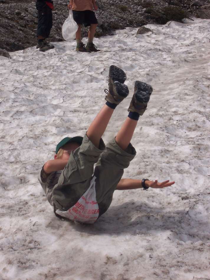 Bei einem noch für diese Jahreszeit mächtigen Schneefeld wurde auf Plastiktüten noch ausgiebig gerutscht. So nahe sind Hitze und Kälte in den Bergen zusammen. Ein Wochenende, das vielen noch lange in Erinnerung bleiben wird.
