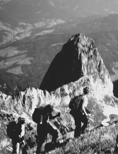 Recht steil war er schon, der Anstieg zum Gennerhorn. Kein Wunder, dass alle Teilnehmer recht verschwitzt dort ankamen. Dafür entschädigte der Weiterweg über Gruberhorn und Regenspitz mit einer herrlichen Aussicht auf das Tennengebirge und den schon winterlichen Dachstein. Eine typische Herbstwanderung, bei der nicht nur die alpinen, sondern vor allem die landschaftlichen Eindrücke überwiegen. Die Einkehr in der Feichtensteiner Alm rundete einen sonnigen Bergtag ab. |