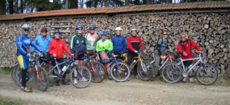 Ein schöneres Wetter hätten wir uns für die Mountainbiketour nicht wünschen können. Ungetrübter Sonnenschein und herbstliche Frische. Die wenigen nassen und rutschigen Stellen in den Waldabschnitten taten dem Spaß keinen Abbruch. Nach einer abwechslungsreichen Rundtour, mit Trials, Waldpfaden und steilen Forstwegauffahrten, genossen wir noch in einem Wirtshaus, hoch über Bergen gelegen, die Nachmittagssonne bei Kaffee und Kuchen. Zwei konnten sich’s nicht nehmen lassen, angestachelt durch die Zurufe von zwei Bauern, die letzten Hundert Höhenmeter auf einem steilen aber wirklich lohnenswerten Waldpfad bis ins Tal nach Bergen hinunter zu düsen. Der dritte misstraute diesen Worten und zog es vor, über die sichere Straße zum Auto zurückzufahren.