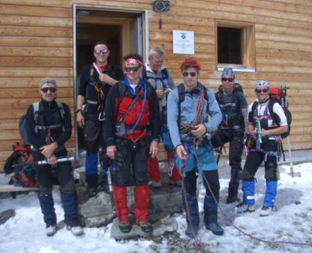 Bei dieser Tour hatte es das Wetter sehr gut mit uns gemeint. Als wir am Parkplatz vor dem Anstieg zur Hütte ankamen, hatte es kurz zuvor zu regnen aufgehört, und als wir zum Parkplatz zurückkamen, fing es wieder zu regnen an. Nach einem dreistündigen Fußmarsch kamen wir an Schmid-Zabierov-Hütte (1 966 m) an. Unsere Kletterer Franz und der Grille hatten die Wetterbedingungen nicht so optimal erwischt. Beide waren am frühen Morgen aufgebrochen um den langen Nordgrat des Breithorns zu beklettern. Gegen 19.00 Uhr tauchten sie dann in der Hütte auf. Am nächsten Morgen ging es dann bei Sonnenschein weiter. Acht Personen stiegen über den Klettersteig "Der nackerte Hund" zum Hinterhorn auf. Der Tourenleiter und weitere vier Personen erklommen den Gipfel über den Normalweg. Auch am Gipfel hatten wir noch schönes Wetter, doch die Wolkendecke wurde im Laufe des Nachmittags immer dichter und so regnete es uns noch fünf Minuten auf den Abstieg zum Tal ab. Uns blieb zuvor noch genug Zeit für eine Einkehr in der Hütte zu einer Suppe inklusive Getränk. Danach ging es dann wieder auf dem Hüttenanstiegsweg, jedoch in umgekehrter Richtung, zum Fahrzeug zurück.