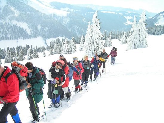 Narrensicheres Wetter am Faschingsonntag. Buntbemalte Gesichter und zufriedene Bergsteiger am Gipfel. Herrliche Berglandschaft im Pulverschnee. Gemütliche Einkehr beim Duftbräu. 18 Teilnehmer glücklich und gesund wieder in Eggenfelden. Mehr brauchen wir zu dieser Tour eigentlich nicht zu berichten. Für die Chronik noch ein paar Informationen: Wegen großer Lawinengefahr mussten wir die Unternehmung um zwei Wochen verschieben. Was aber keinen der Angemeldeten von der Teilnahme abgehalten hat. Drei Stunden Anstieg in meist einsamer Umgebung. Beim Abstieg das übliche Spiel: Laufen, Springen, Hüpfen, Fallen. Schneeschuhgehen dient nicht nur der sportlichen Ertüchtigung, sondern auch dem Spaß. Sechs Teilnehmer waren das erste Mal auf einer Alpenvereins-Schneeschuhtour dabei. Langsam werden wir schon „international“. Die weitesten Teilnehmer kamen von Geisenhausen nach Eggenfelden und hatten ihre Freude auf dieser Tour.