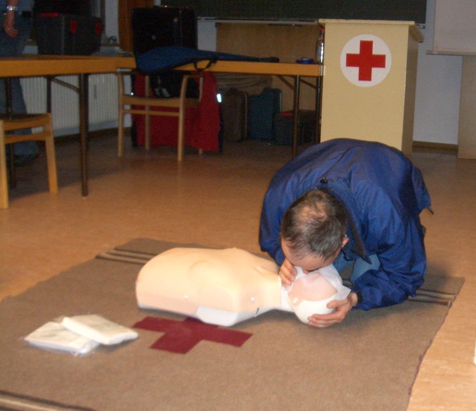Vor einigen Jahren führten wir eine Unterweisung zum Thema Notfälle im Gebirge durch. Hier kamen die Schwerpunkte Notfallalarmierung, Erste-Hilfe-Ausrüstung, Transport von Verletzten sowie leicht angeschnitten die Ersthilfe vor Ort zur Sprache. Gerade beim letzten Punkt, der Ersthilfe von Verletzten, fanden wir bei den Kursmitgliedern doch einige Defizite vor. Auch bei einer Tourenleiterbesprechung zeigte sich großes Interesse zur Durchführung dieser einer Ausbildung. Kurzerhand wurden im letzten Jahr viel Zeit und auch viel Vereinsgeld (ca. 500,00 €) zu einer Ausbildung zum Ersthelfer aufgebracht. 15 Interessenten absolvierten mit Erfolg die Ausbildung vom Bayerischen Roten Kreuz. Fing der erste Abend doch recht theoretisch an, kamen die zwei darauf folgenden Ausbildungsabschnitte weitaus praktischer zur Geltung. Stabile Seitenlage, Lungen- und Herzwiederbelebungen, Verbandsanlegung waren die Hauptschwerpunkt, welche es zu Erlernen galt. Jeder der 15 Teilnehmer übte teils an wehrlosen Puppen teils an seinen Nachbarn die erlernten Handgriffe aus. Zum Abschluss dieser Ausbildung erwarben alle teilnehmenden Mitglieder den Erst-helferausweis. Wir wollen hoffen, dass wir unser Erlerntes nicht einsetzen müssen, doch es schadet auch nicht, auf unerwartete Ernstfälle gut vorbereitet zu sein.