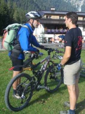 Für eine Wochenendunternehmung nahmen wir unsere Mountainbikes in das Karwendelgebirge mit. Gutes Bergwetter, vielleicht ein paar Schauer am Abend, wurde vorhergesagt. Achenkirch am Achensee war unser Ausgangs- und Endpunkt. Am ersten Tag ging es recht unspektakulär auf Asphalt- und befestigten Forststraßen. Dank des Tourenleiters wurde dieser Tag fast vollständig mit dem Pedaltreten ausgenutzt. Statt den angegebenen 81,7 km fuhren wir „nur“ 110,5 km. Aber dafür war unser Mittagsplatz, das nicht mehr bewirtschaftete Gasthaus Aquila, ein sehr ruhiger Ort für unsere Brotzeit! Dass uns zum Schluss ein Platzregen mit Hagel erwischte, kann man auch nur positiv sehen. Bestimmt hätte nicht jeder die Dusche in der Lerchetalm, bei trockenem Wetter, benutzt! Der darauf folgende Tag fing ebenfalls recht unspektakulär an. Nach dem Aufstehen wurden die noch nicht trockenen Radlerhosen und Trikots angezogen. Nach dem Frühstück mit frischen Semmeln – ja positive Aspekte sollten auch benannt werden, folgte der Anstieg zum Karwendelhaus. Hier bremste lediglich eine kleine Panne unseren Elan. Endlich kamen die Abfahrten dran, und so wechselte die Reihenfolge der Teilnehmer. Die Letzten waren nun die Ersten. Wohl dem, der wusste, dass seine Federgabel in der Federlänge verstellbar war. In Pertisau holte uns die Zivilisation wieder ein. Bei der Umfahrung des Achensees konnten die gemessenen Topspeed-Zeiten (diese lagen bei weit über 70 km/h) verglichen werden. Glücklicher-weise wurden an diesem Tag, kaum Umwege gefahren. So hatten wir nach den 65 gefahrenen Kilometern noch ein wenig Zeit für ein kleines bzw. großes Eis. Bei dieser Unternehmung radelten wir in den zwei Tagen 177,6 km und legten eine Differenz von 3 107 Höhenmetern zurück. Trotz der Ereignisse war diese Tour eine harmonische und auch sehr lustige Aktion.