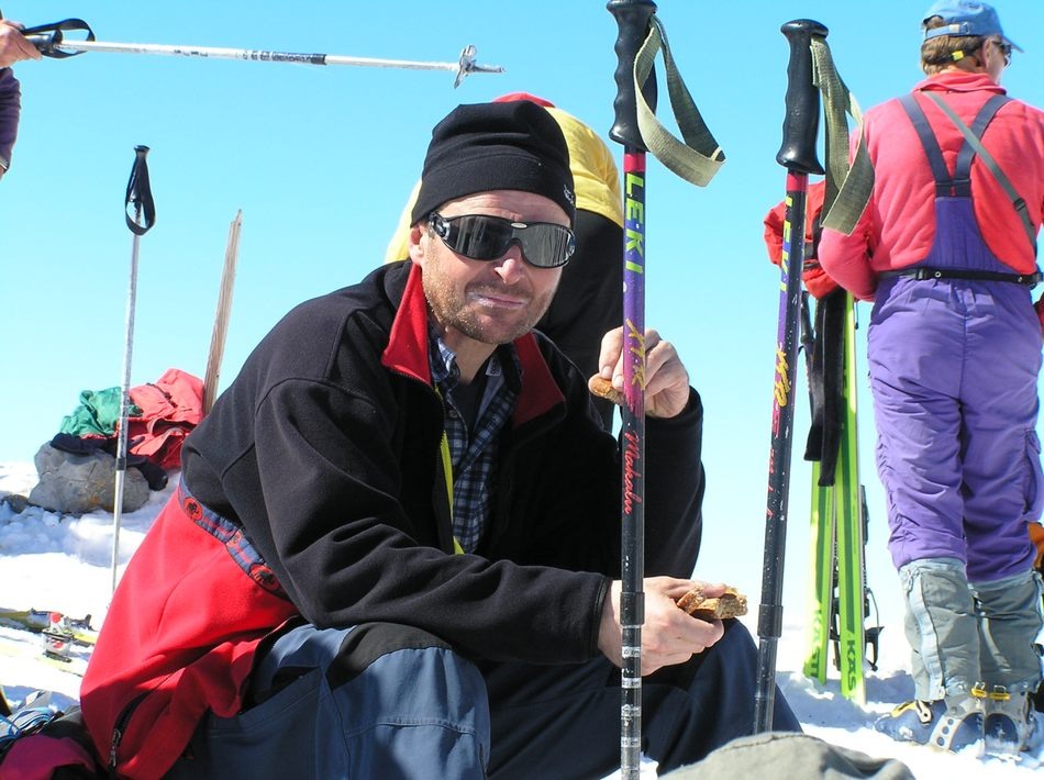 Nach stundenlanger Fahrt steigt man am Zielort voller Tatendrang aus und erschrickt erst mal. Dass doch immer so viele die gleichen Ideen haben. Dabei haben wir wegen des frühen Aufbruchs noch Glück gehabt. Nach uns strebten ganze Busladungen an Bergsteigern zum Marterlkopf. Dementsprechend pistenartig war dann auch die gesamte Route und überlaufen der zu kleine Gipfel. Aber es gibt immer Mittel um sich von den Massen abzuheben. Und wenn’s nur ein kühles Bier ist, das neidige Blicke bei den anderen hervorruft, dem Franz sei Dank. Und die Abfahrt im durchwegs steilen Gelände geht gleich viel lockerer und schwungvoller!