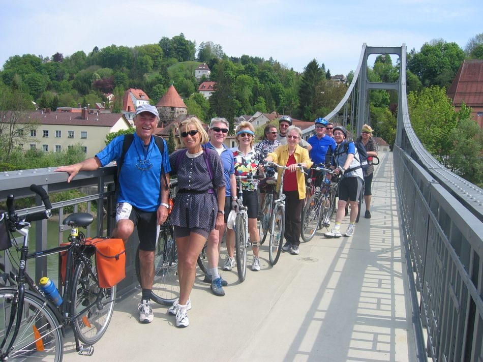 Start und Ziel unserer 80 km langen Sauwaldrundtour war Schärding am Inn. Woher diese beschauliche Wald- und Hügel-gegend ihren Namen bekommen hat, konnten wir während der Radtour bei besten Willen nicht feststellen. Nach einigen knackigen Anstiegen wurde der kleine Ort Stadl erreicht. Begünstigt durch den anhaltenden Föhn, hatten wir einen herrlichen Rundblick: Schneebedeckte Alpengipfel im Süden, Donautal mit Mühlviertel im Osten, Inntal und Bayerischer Wald im Norden. Nach rasanter neun Kilometer langer Serpentinenabfahrt erreichten wir Engelhartszell an der Donau. In einem gemütlichen Biergarten direkt am Fluss, wurde Kraft getankt für die nächste Etappe, welche uns nach Passau führte. Hier verabschiedeten wir uns auf der „Fünferlbrücke“ (nur Insidern bekannt!) von Passau. Weiter führte uns der Inntalradweg bis nach Wernstein. Zum Ausklang genehmigten wir uns bei sommerlichen Temperaturen eine Kaffeepause mit wunderbarem Blick auf die Neuburg hoch über dem Inn und die Burg Wernstein. Noch bevor die heranziehende Gewitterfront uns eine Dusche verabreichte, waren wir an unserm Ziel in Schärding und die Räder bereits verladen.
