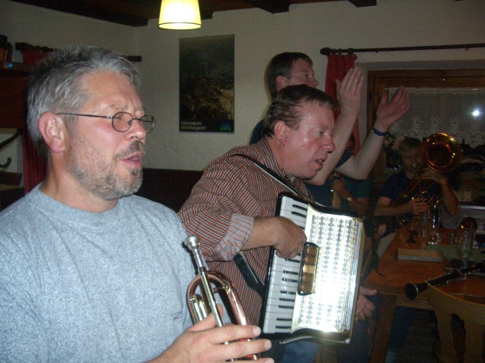Hans Ganghofer forderte von seiner fünf plus zwei-köpfigen Band alles. Mit einem Repertoire von Volks- und Stimmungsmusik brachten sie die Hütte im wahrsten Sinne des Wortes zum toben.