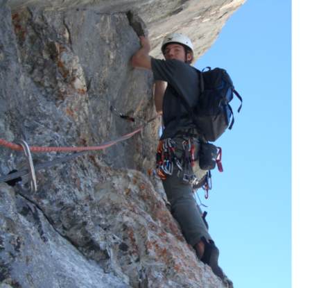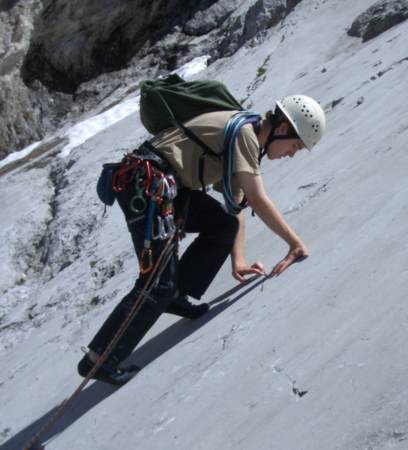 Das schöne Wetter konnte auch die Hochtourengruppe nutzen. Am Dienstag starteten wir zu Fuß zur Bergsteigerunterkunft Diavolezza (2 973 m) . Zum ersten Mal wurde die Sicht auf den riesigen Morteratsch-Gletscher frei. Ein Blick nach oben, ließ die dichte Wolkendecke nicht zu. Den darauf folgenden Tag begannen wir um 4.00 Uhr in der Früh. Über den Piz Palü (3 905 m) , einem riesigen Bergmassiv wurde ein Anstiegsweg durch den spaltenzerrissenen Gletscher gebahnt. Immer wieder galt es vorsichtig, die mit Steigeisen „bewaffneten“ Füße, an Spalten vorbei ins Eis zu krallen. Der obere Teil des Gipfels wehrte sich mit einer ca. 40° steilen Eisflanke, die nur unter zu hilfenahme der mitgeführten Eispickel und Eisschrauben bewältigt werden konnte. Nach Vollendung dieser Mühen tat sich im Gipfelbereich auf einer Meereshöhe von 3 905 m ein atemloser Blick über das gesamte Oberengadin auf. Die Zeit zum Verschnaufen wurde von den beiden Tourenleitern kurz bemessen, da ein langer Weg im alpinen Gletschergelände und gespickt mit reichhaltigen Gegenan-stiegen auf uns wartete. Nach einem Tagespensum von 12 Stunden erreichten wir die auf 3.610 Meter hoch gelegene Rifugio Marco e Rosa. Die Anstrengung der vorangegangenen Stunden waren in die Gesichtern geschrieben. Am kom-menden Tag galt es eine Höhendifferenz von „nur“ 450 Höhenmeter zum Gipfel des Piz Bernina zurückzulegen. Den ersten Wegteil ohne nennenswerte Schwierigkeiten, doch der Spallagrat wartete noch auf seine Begehung. Die niederschlagsreiche Witterung der vorangegangenen Tage bedeckten die Felsen mit einer Schneeschicht. Dies machte das Klettern nicht gerade leichter. Stellen im zweiten Schwierigkeitsgrat waren mit den Steigeisen zu überwinden. Anschließend reckte sich ein 100 Meter langer messerscharfer Eisgrat dem Gipfel entgegen. Für die Strecke zum Gipfel brauchten wir fast drei Stunden. Erst oben angekommen nahmen wir die atemberaubende Rundsicht war. Voller Stolz über die erbrachte Leistung waren besonders die 4.000er-Neulinge Marketa Hartl und Erwin Ruhland. Lange konnte der Abstieg nicht hinaus- gezögert werden, da dieser bis ins Tal zu erfolgen hatte. Die auf dem Weg befindlichen Kletterstellen konnten jedoch im Abstieg abgeseilt werden, was eine ziemliche Erleichterung brachte. An diesem Tag lernten wir die Ausmaße des Morteratsch-Gletschers richtig kennen, denn erst um 19.30 Uhr am gleichen Tage wurde das Gletschereis verlassen.