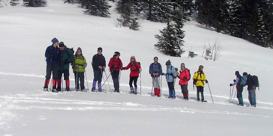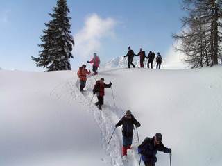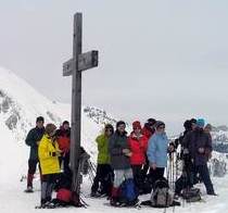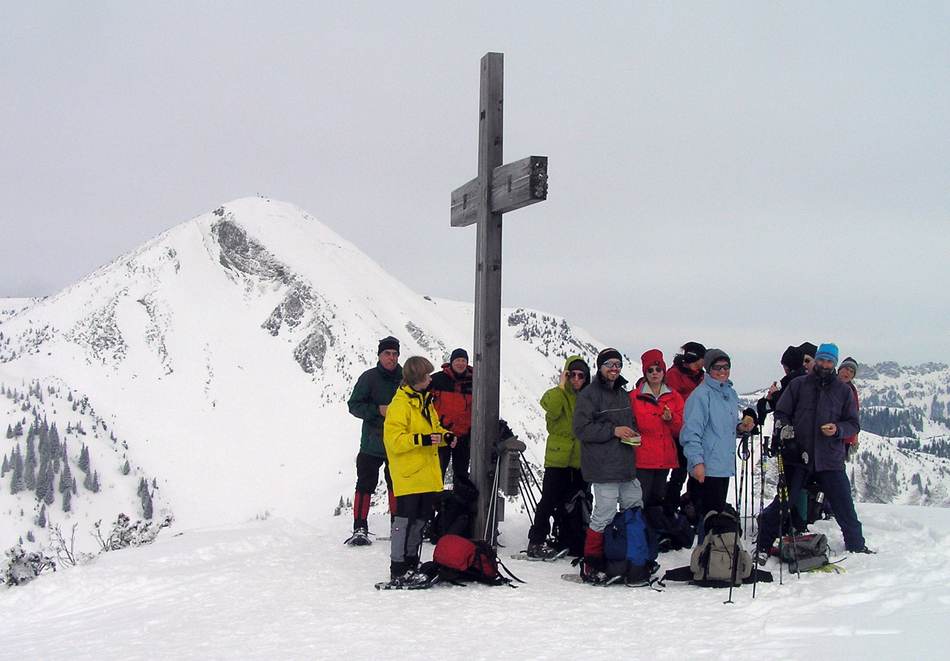 Schneeschuhgehen macht Spaß. Und deshalb passt eine Schneeschuhtour auch zum Faschingsdienstag. Das dachten sich zumindest die elf Teilnehmer und sie sollten Recht behalten. Um den Anstieg ein wenig zu verkürzen, brauchten wir die Geigelsteinbahn. Obwohl sie an diesem Tag erst am Nachtmittag Betriebszeit hatte, schaltete sie extra für uns eine Sonderfahrt dazwischen. Das ist ein Service und soll hier ausdrücklich gelobt werden. Bei bestem Wetter machten wir uns an den Anstieg. Durch eine riesige Mulde ging es in Richtung Gipfelgrat. Dieser verteidigte sich mit einigen kurzen steilen Stellen, die uns beim Abstieg noch viel Freude bereiten sollten. Am Gipfel wartete schon der Grille, der sich mit seinen neuen Tourenski vorher noch den Geigelstein genehmigt hatte. Der Abstieg wurde erwartungsgemäß lustig. Da gab es die tollsten Überschläge mit hohen Haltungsnoten zu bewundern. Wieder im Tal angelangt, genehmigten wir uns einen gemütlichen Tagesausklang in der Schmugglerstube.
