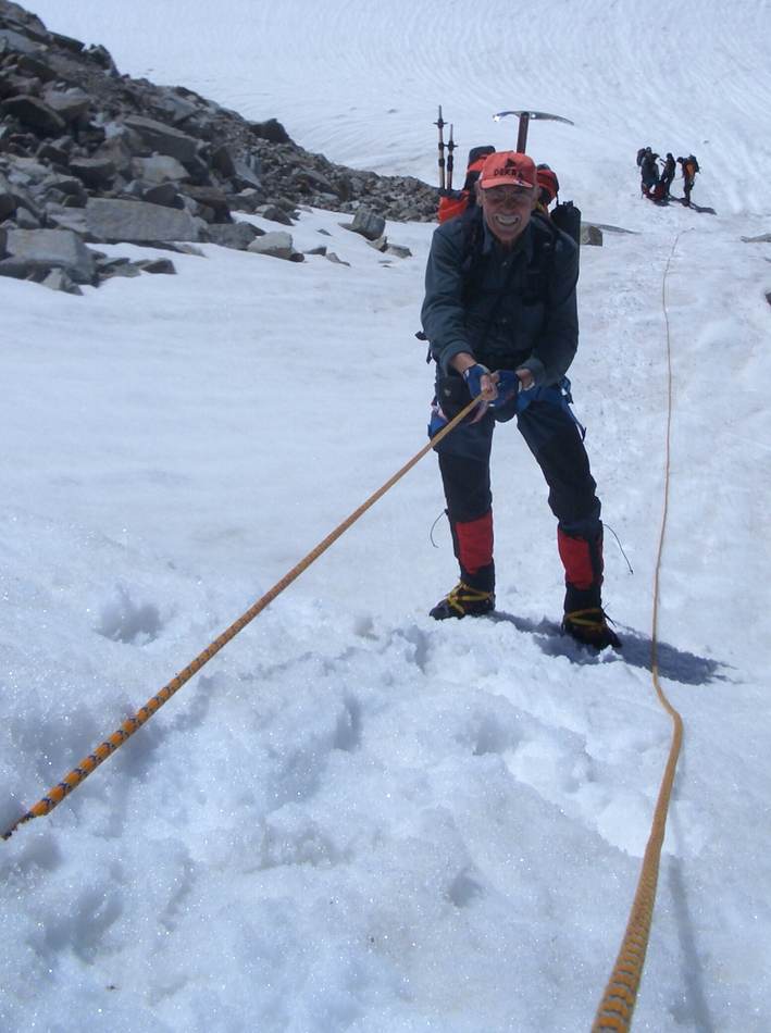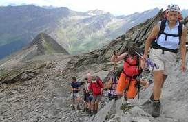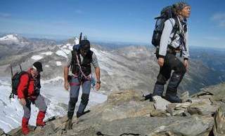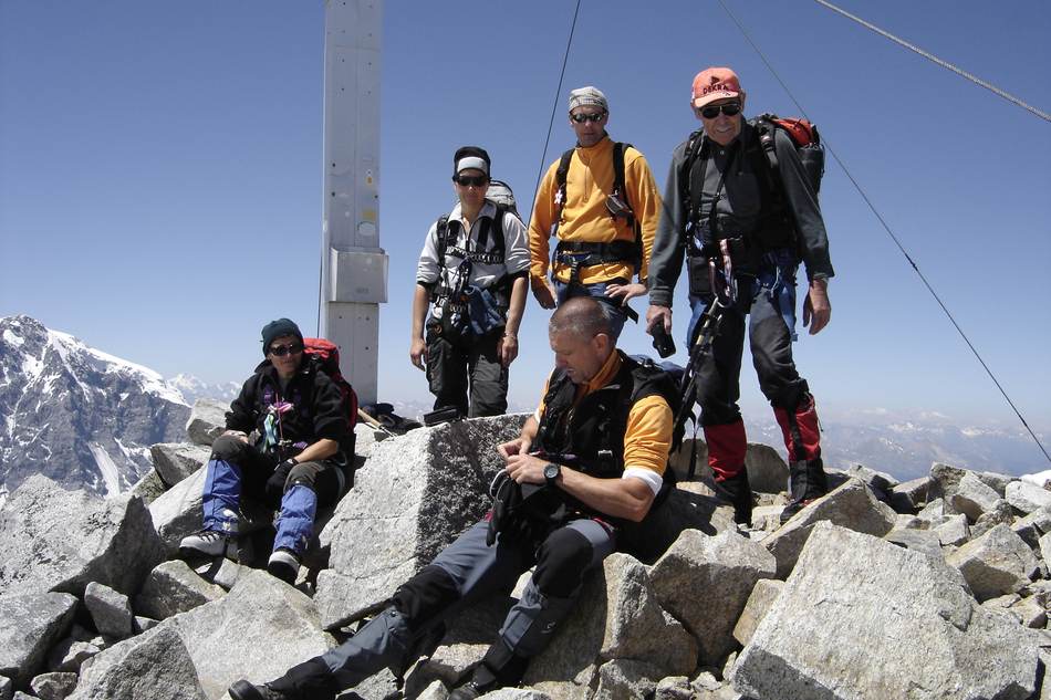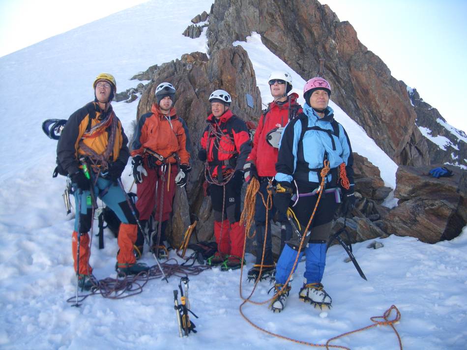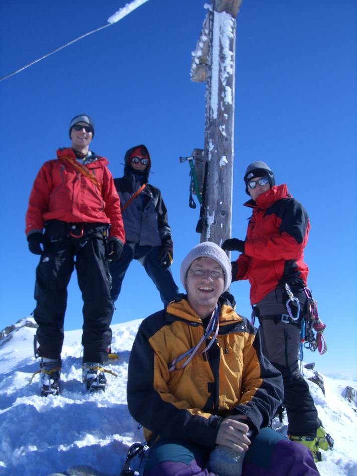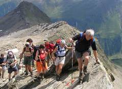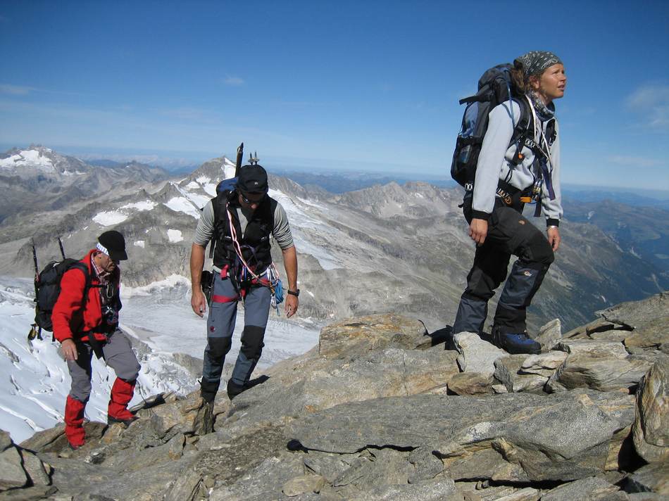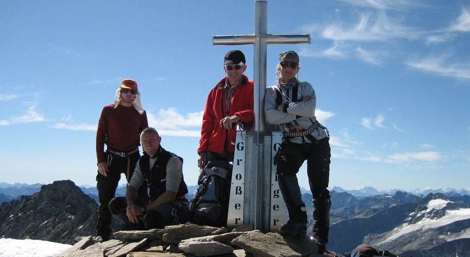 Die Ansicht des Großen Geigers bei einer Skitour im Vorjahr bewirkte beim Tourenleiter so eine Anziehungskraft aus, dass eine Gipfelbesteigung in diesem Jahr folgen sollte. Nach einer Terminverschiebung um drei Wochen war es dann soweit. Mit dem kurz zuvor neu erworbenen Vereinsbus ging es bequem ins Virgental. Beim Anstieg zur Essener- Rostocker Hütte (2 208 m) durften wir einen neu-modernen Almabtrieb erleben. Mittels Bulldog und Viehanhänger wurden die Viecher ins Tal kutschiert. Enttäuscht von diesem Technikeinzug erreichten wir nach gut zwei Stunden unser Quartier. Am darauf folgenden Tag wurden wir mit lautstarker Blasmusik aus dem Handy um 5.00 Uhr geweckt. Auf einsamen Wegen ging es den Stedacher Winkel bis zum Maurerkees. Nach dem Anlegen unserer Gletscherausrüstung ging es an einigen Spaltenzonen vorbei zum Westgrat des Gr. Geigers. Über diesen Blockgrat erreichten wir nach zirka vier Stunden Aufstieg von der Hütte den Gipfel. Bei herrlichem Wetter konnten wir die faszinierende Rundsicht genießen. Das frühe Aufstehen am Morgen hat sich wieder einmal bewährt, denn hier droben waren wir ganz allein. Erst beim Abstieg über den Westgrat kamen uns die nächsten Seilschaften entgegen. Am frühen Nachmittag kamen wir wieder an der Essener-Rostocker Hütte an. Nach einer kurzen Pause bewältigten wir den Abstieg ins Tal. Erst spät am Abend kamen wir wegen der langen Heimfahrt in Eggenfelden an. Dies war jedoch kein Hindernis, da die meisten Tourenteilnehmer am nächsten Tag wegen des Papstbesuches frei hatten.