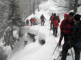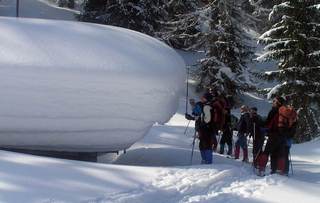 In der Nacht mit Schneeschuhen durch die Winterlandschaft zu wandern, erfreut sich größter Beliebtheit. Kein Wunder, dass wir bei dieser Tour ausgebucht waren, obwohl bis Mittag noch starke Schneefälle und schlechte Straßenverhältnisse gemeldet waren. Wer dabei war, brauchte die Entscheidung nicht zu bereuen. Einsam zogen wir unsere Spur in vierzig Zentimeter Neuschnee von der Sudelfeldstrasse weg zum Gipfel. Dieser erwies sich als ein keckes Felshorn, welches wir jedoch ohne Schwierigkeiten bezwangen. In der nun einsetzenden Dämmerung ging es über ideale Schneeschuhhänge hinunter zum Alpengasthof Hohe Asten. Dieser ist von der anderen Seite her nicht umsonst ein beliebtes Ziel für Schlittenfahrer. Wir genossen den Abend bei guter Bewirtung und freuten uns schon auf den Abstieg. Denn längst hatte es draußen vollkommen aufgeklart und der Vollmond beleuchtete den Weg. Kaum ein Wort fiel auf dem Weg ins Tal, denn alle waren von der außergewöhnlichen Stimmung verzaubert. „Schade, dass es schon vorbei ist“, war die einhellige Meinung, als wir zum Ausgangpunkt zurückkamen.