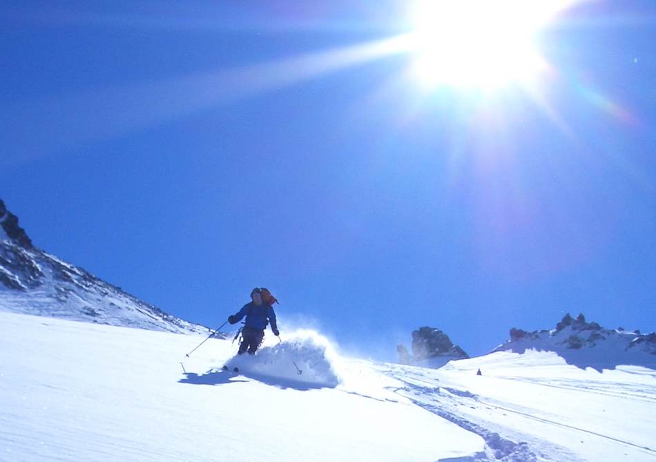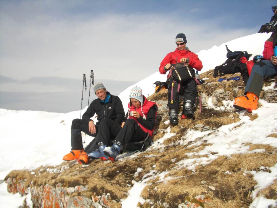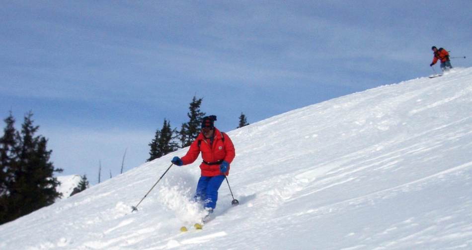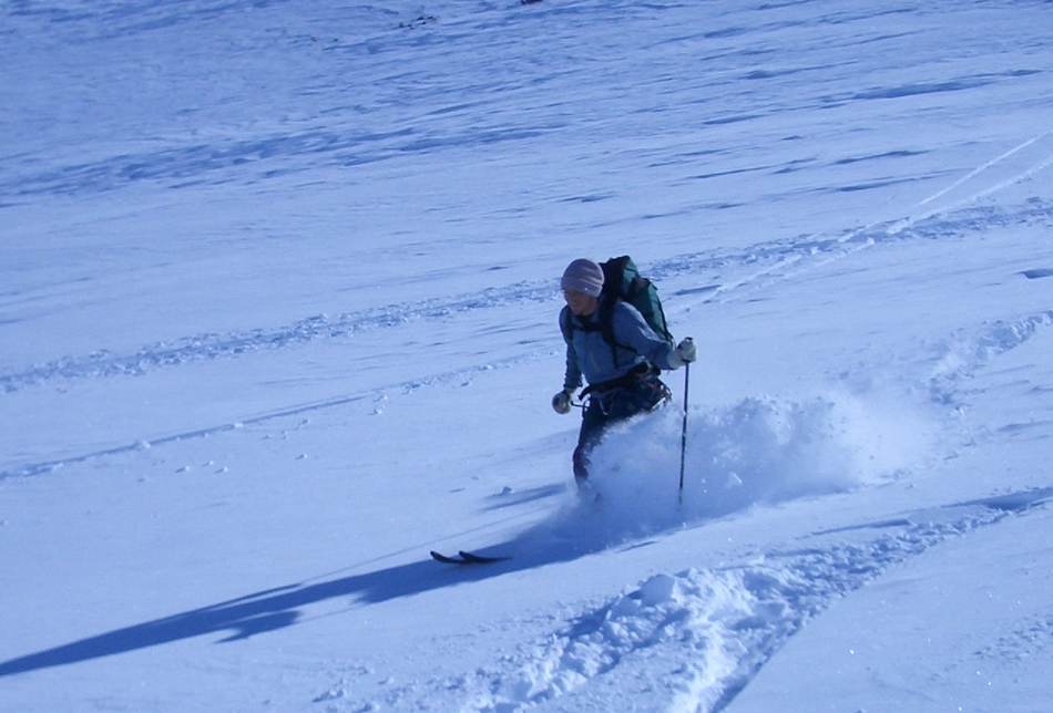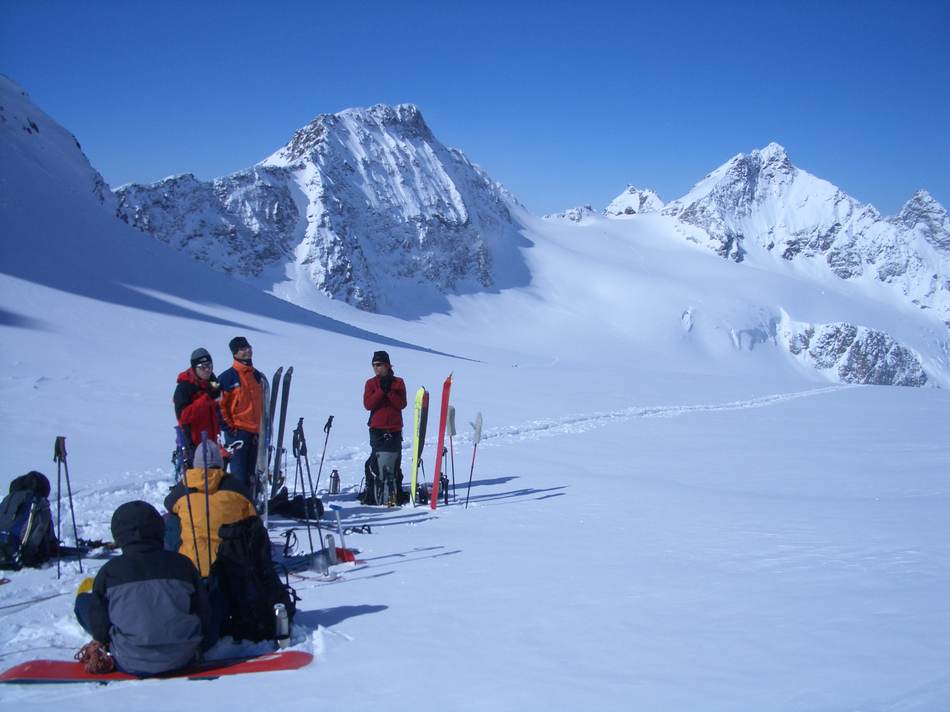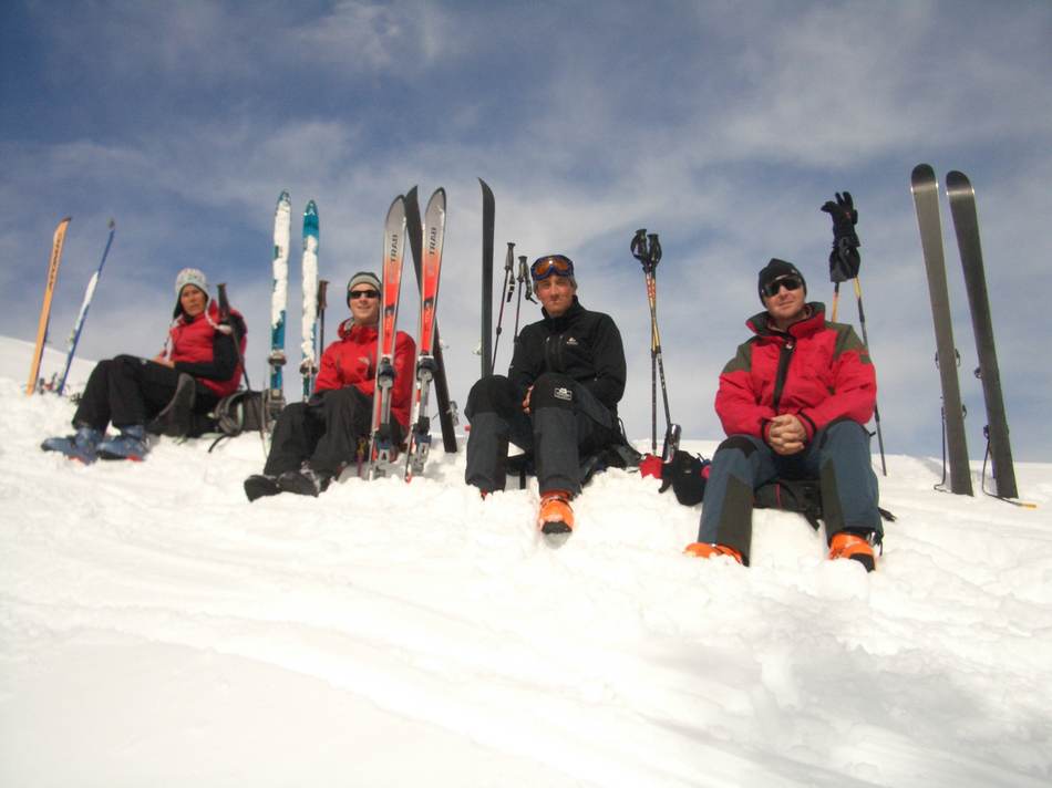 Aufgrund von ungünstigen Schneeverhältnissen haben wir die Tour kurzerhand um ein Wochenende verschoben, was sich im Nachhinein als ausgesprochener Glückstreffer herausstellte. Die kalten Temperaturen und Niederschläge der Vortage ermöglichten uns Pulverschnee unter blauen Himmel bis zum Abwinken. Ein erster Höhepunkt war das Federbettkees, ein zweiter das Grierer Kar mit insgesamt 1 500 Höhenmeter Abfahrt. Ein einziger Wermutstropfen waren die steilen Waldrinnen (bitte beim nächsten Mal mit Motorsäge!) ganz am Schluss und der Rückhatscher im Tal zum Autodepot. Auf der Sonnenterrasse eines Cafés ließen wir diesen erlebnisreichen Tag bei Milchkaffee und Kuchen genussvoll ausklingen.