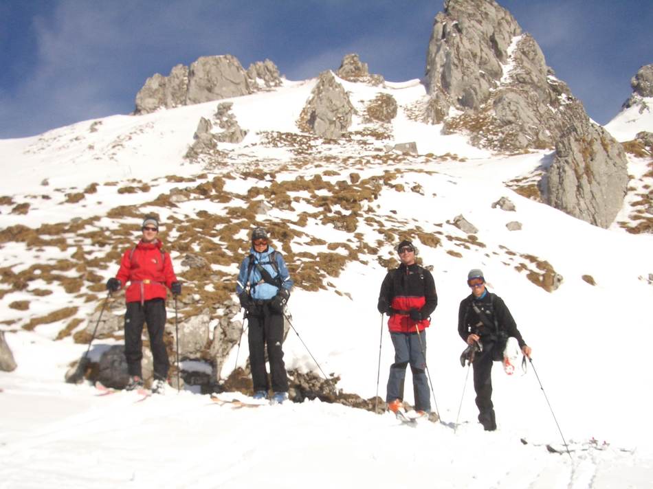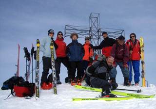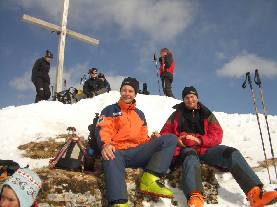 In Lengau begannen wir die eigentliche Tour. Auf einsamen Spuren, welche wir teilweise im Schnee selbst spuren durften, ging es dem Gipfel nordwestseitig entgegen. Schon beim Aufstieg stellten wir fest, dass die Bedingungen besser als vorausgesagt waren. Nach einer dreistündigen Wegstrecke standen alle neun Gipfelaspiranten auf der fast einsamen Spitze des Spieleckkogels. Der Wind blies uns hier recht scharf ins Gesicht, daher nahmen wir die Gipfelbrotzeit ca. 50 hm tiefer zu uns. Dann war es soweit: für einige das Beste am Skitourengehen, für andere ein Übel, das dazu gehört: Die Abfahrt! Doch bei fast idealem Schnee machte ein jeder eine gute Figur. Schade eigentlich, dass wir schon nach einer Stunde unseren Vereinsbus wieder erreichten.