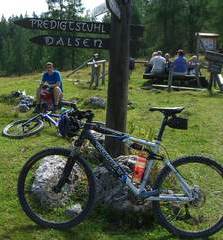 Vom Start weg war Roland Callies plötzlich nicht mehr bei der Mannschaft. Er schwenkte, wegen Ersatzteilschwierigkeiten (das Schaltauge war erblindet) bei seinem unfahrbar gewordenen very specialized Radl, die weiße Flagge und ließ sich von seiner besseren Hälfte mit dem Auto abholen. Tja, dann waren’s nur noch 16. Doch das Wetter besserte sich spürbar. Es war zwar kein Badewetter, aber dafür stellten die Wolken das Schwitzen ein.