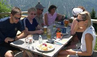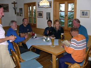 Die Gruppe 2 legte eine Trinkpause in der Badwirtschaft Malaichen ein, bevor sie nach 50 km Wegstrecke und Überwindung von 572 Höhenmetern (Messungen Franz Langbauer) gegen 19.15 Uhr im Landgasthof Rössle in Stiefenhofen auf die bereits erholten Vorauseilenden stieß.