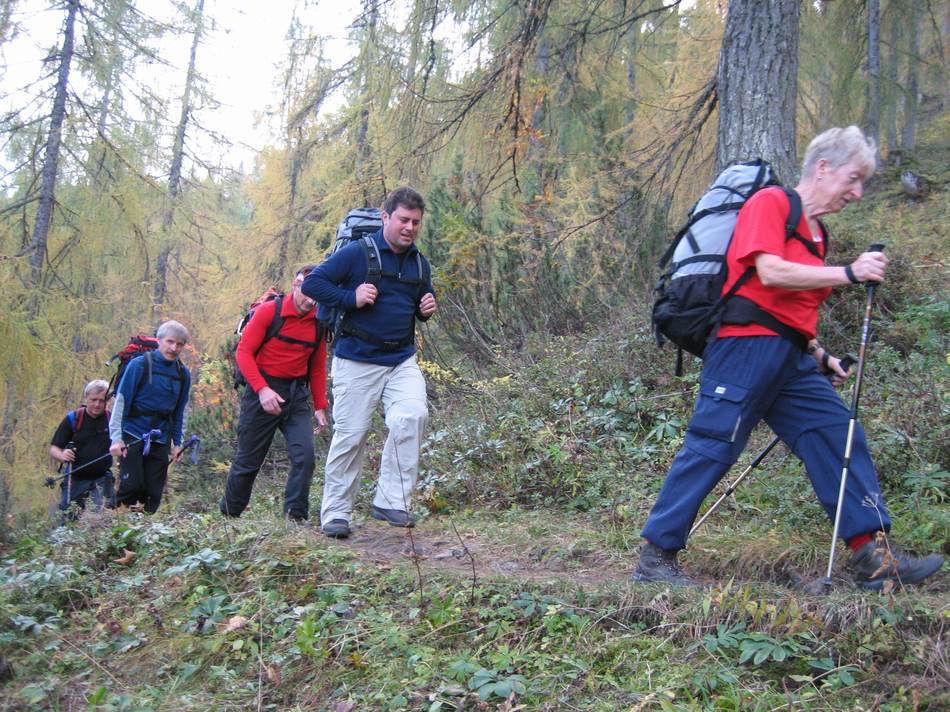 Grau und verregnet erwartete St. Gertraud (das ist keine Heilige sondern der Ortsname) im hinteren Ultental die 10 Bergsteiger aus Eggenfelden bei ihrer Ankunft in Südtirol. Bei der ersten Erkundungstour über Fichtalm, Tucher- und Weissbrunnsee erhellten sich nicht nur das Wetter sondern auch langsam die Gemüter und die Gesichter erstrahlten am Abend bei einem Verwöhnmenü aus der vorzüglichen Küche des Ultentaler Hofes, unserer Unterkunft.