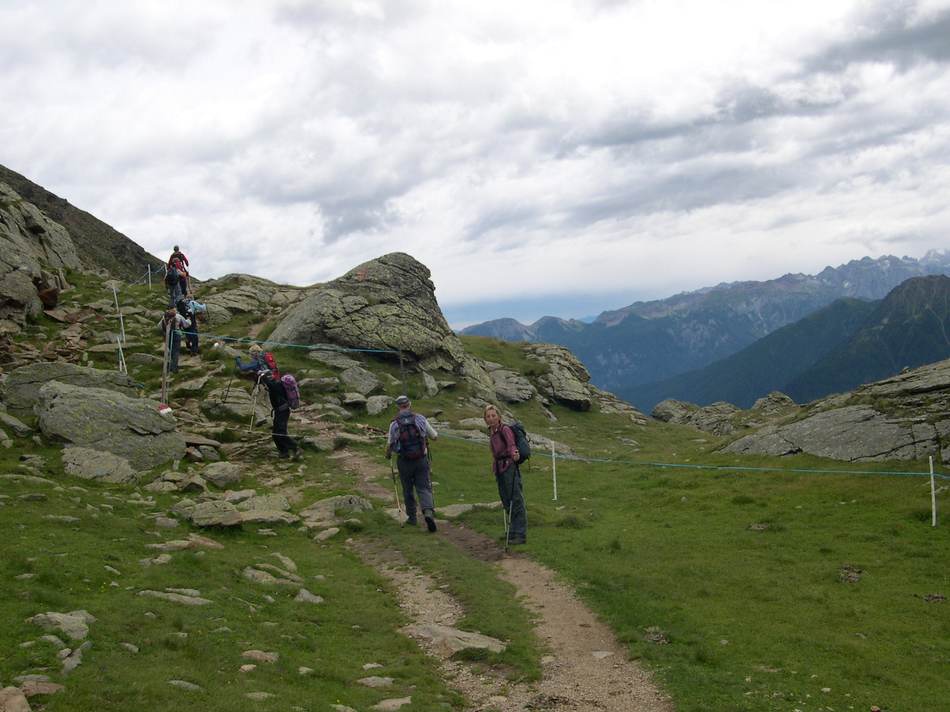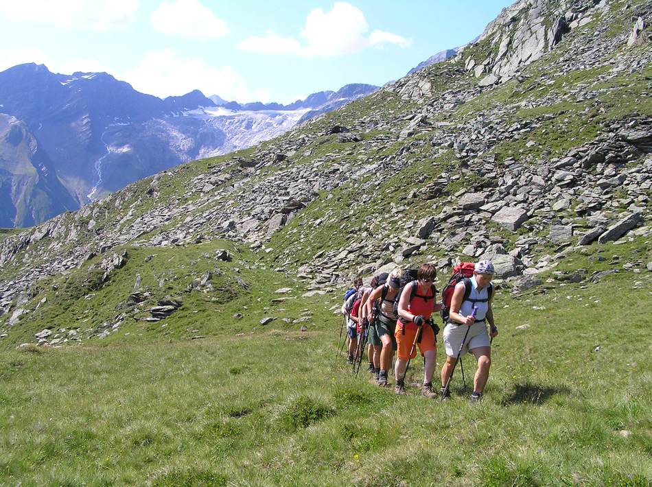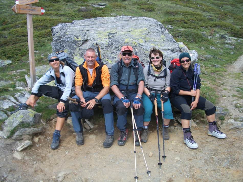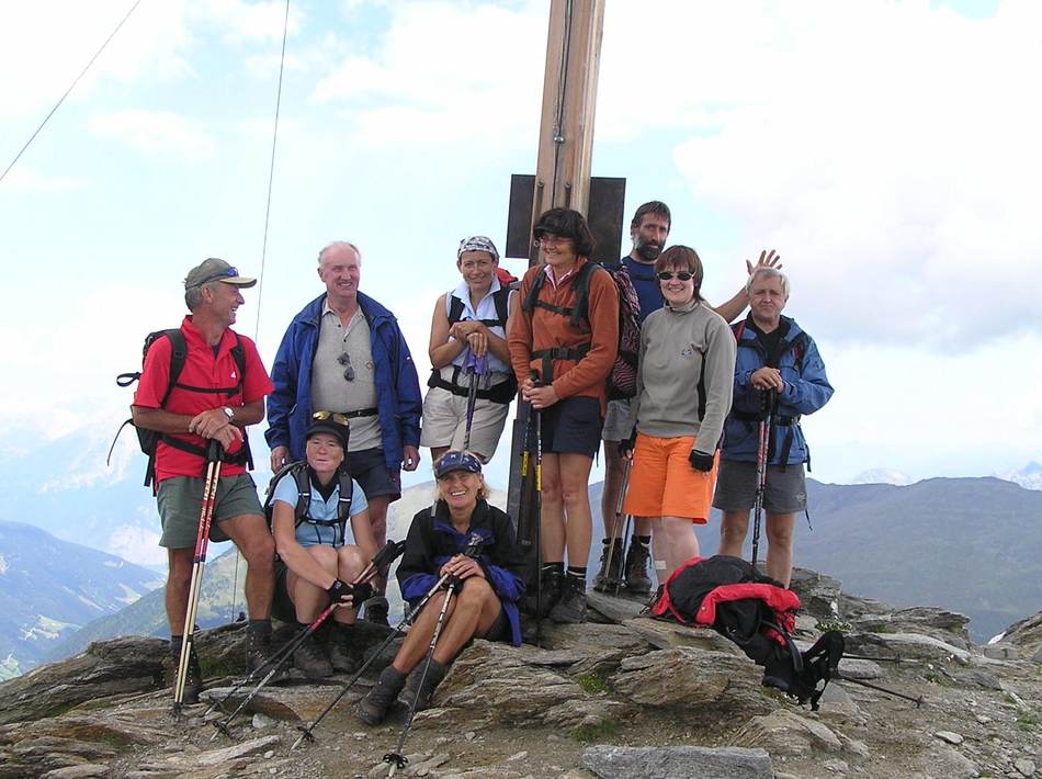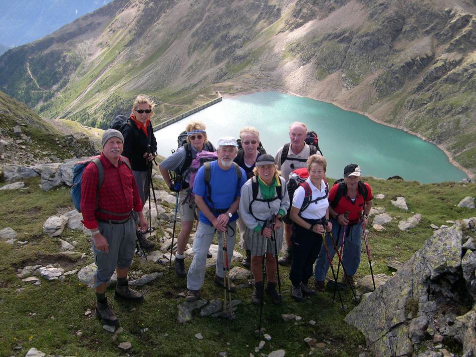 Am nächsten Tag war uns das Wetterglück hold. Ein Schönwetterloch mit Föhn über dem Bozener Raum ebnete uns den Weg zur Besteigung des Gleck (2 957 m) . Über Lang-, Pluder- und Schwarzsee reichten 3½ Stunden Gehzeit zum Gipfelglück. Ein schneidiger Wind verkürzte jedoch die eingeplante Rast und über ein Steiglein, vorbei an 7 Seen, wurde an der geschützten Haselgruber Hütte Brotzeit gemacht. Nach dem Kirchbergjoch schloss sich nach 7 Std. Gehzeit der Kreis dieser Rundtour.