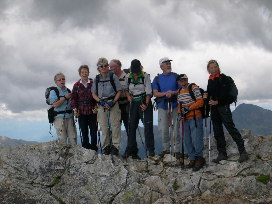 Für neun Bergwanderer war dies die erste Tour mit unserem neuen Vereinsbus. Die Fahrt ging über Salzburg und Bischofshofen nach Großarl. Hierzu nutzten wir noch die Möglichkeit bis auf eine Höhe von 1 200 m zu fahren. Wir schnürten unsere Bergschuhe in Vorderstadluck und gingen über mäßig steilen Steig über Almböden bis zur Röschenbergalm in 1 744 m Höhe. Da war unbedingt eine Trink- und Verschnaufpause erforderlich, denn das schwülwarme Wetter lies den Schweiß reichlich fließen. Hier mündet auch der Weg von der Gerstreitalm kommend in unseren Weg ein. Wir hatten uns vorgenommen beim Abstieg diesen Weg zu nehmen und auf der Gestreitalm einzukehren. Der weitere Anstieg führte uns in nördlicher Richtung bis kurz vor die Saukaralm. Hier bogen wir rechts ab und stiegen den Bergpfad empor. Oben angekommen wurde der Saukarkopf seinen Ruf als einer der schönsten Aussichtsberge im Großarltal gerecht. Die sehr hoch liegende Wolkendecke bedeckten nur die Gipfel der Ankogelgruppe. Nach der Gipfelrast mussten erst noch die zwei Nachbargipfel bestiegen werden. Erst dann ging es talwärts zur Gerstreitalm auf einen Kaffee oder Weißbier. So gestärkt schafften wir den restlichen Weg und die Heimfahrt.