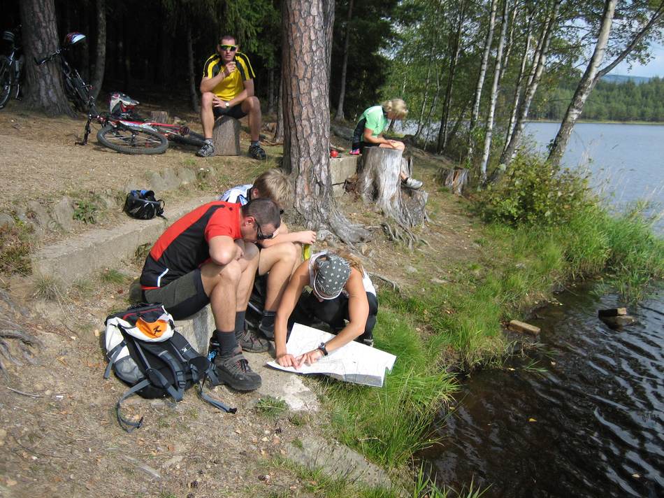 Für unsere gemeinsame Tour, die aus zwei Gruppen bestand, aus den Tourenradlern und den Mountainbikern, haben wir uns einen sonnigen Samstag im September ausgesucht. Angefangen hat es mit einer Panne an unserem neuen Vereinsbus. Die Heckscheibe wurde durch einen kaputten Radträger, welcher sich auf dem Anhänger befand, eingeschlagen. Mit Folie und Klebeband wurde mit Ideenreichtum ein Provisorium eingesetzt. In der böhmischen Stadt Volary begann unsere Rundtour. Die Tourenradler absolvierten die ca. 50 km lange Strecke auf meist befestigten Wegen. Bei den Mountainbikern ging es hier schon härter zur Sache. Über viel Schotter und einigen weglosen Passagen in einen Urwald aus Bäumen und Brenneseln bis zu Tragepassagen durch die Burgruine, wo sich gemeine böhmische „Killerwespen“ auf uns stürzten und die Hälfte der Gruppe mit schmerzhaften Stichen attackierten, trafen sich nach einer Fahrzeit von gut vier Stunden beide Gruppen zu einem gemeinsamen Essen im Biergarten wieder. Nach einem ausgiebigen und vor allem kostengünstigen Essen traten wir die Heimfahrt wieder an.