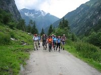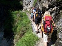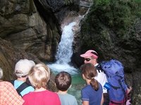Unter Canyoning versteht man das gesicherte Begehen von Wildbächen. Eine sehr feuchte und kühle Angelegenheit. Begleitet von einem ortskundigen Führer stiegen wir in voller Neoprenmontour oberhalb von Weissbach bei Lofer in eine Schlucht ein. Springend, rutschend und abseilend bewegten wir uns von Gumpen zu Gumpen schluchtabwärts. Alle von uns meisterten die Schlüsselstelle, einen 7 m hohen Sprung tadellos. Diese Unternehmung war für uns alle sicherlich das Highlight im Jugendprogramm.