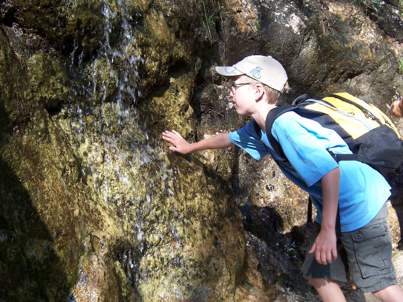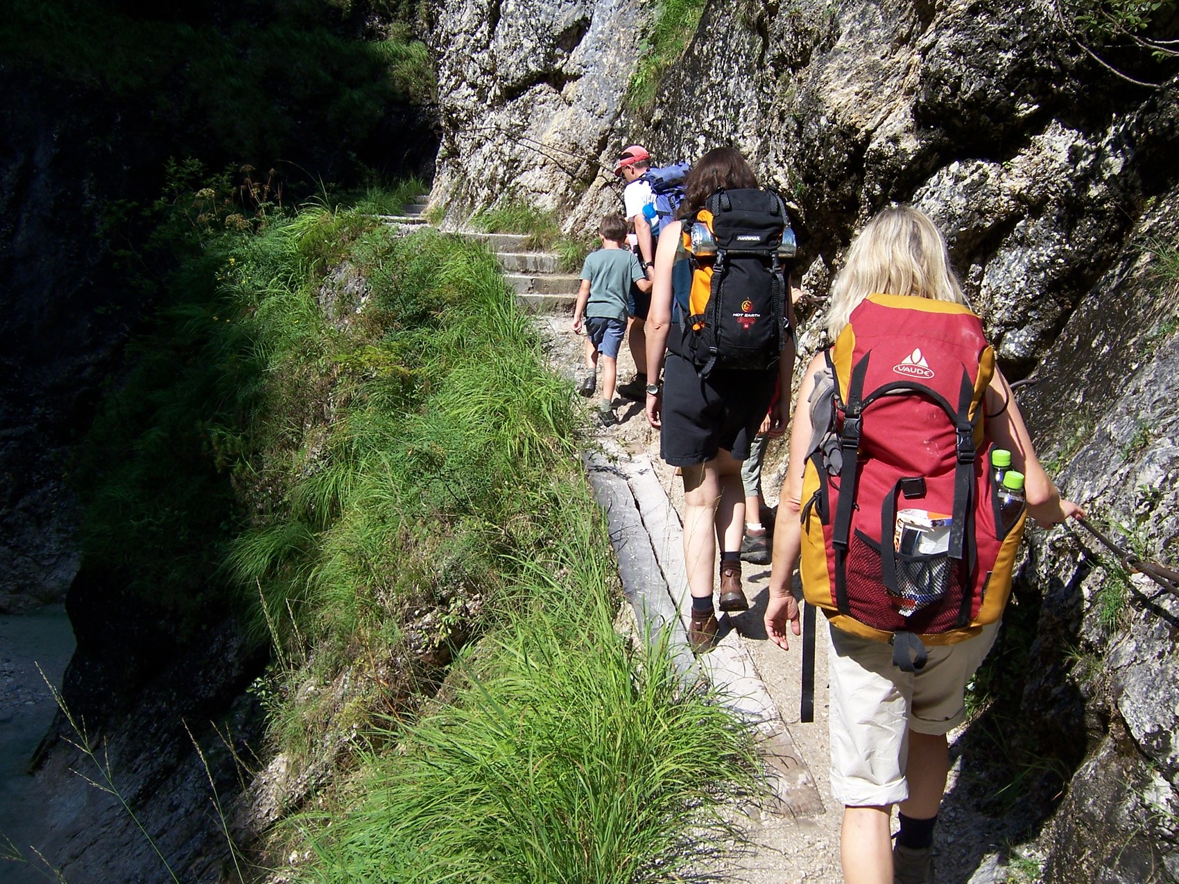 An diesem schönen Sommertag haben wir uns einiges vorgenommen. Auf dem Programm steht die Durchquerung der größten Wildbachschlucht Deutschlands, der ca. 3 km langen Almbachklamm bei Marktschellenberg. Bereits am Anfang der Schlucht gab es einiges zu sehen. So konnten die Kinder eine 300 Jahre alte, mit Wasserkraft betriebene Kugelmühle besichtigen, wo die früher als Kinderspielzeug sehr beliebten Murmeln hergestellt wurden und über Rotterdam und London auf dem Seeweg bis nach Westindien exportiert wurden. Entlang eines gut gesicherten Weges über viele Stufen, Brücken, Nischen und einem Tunnel erkundeten wir dann die tief ins Gestein eingeschnittene Schlucht. Immer wieder kamen wir an idyllischen Wasserfällen und Badegumpen vorbei. Das blautürkise aber eiskalte Wasser verlockte uns alle immer wieder zu Pausen, die von den Kindern zu ausgiebigen Kneiptouren und Kletterspielen an den Felsen genutzt wurden. Beeindruckend waren auch die vielen Blumen am Wegesrand und die vielen bunten Schmetterlinge die vom Salz auf unserer Haut angelockt wurden. Höhepunkt war sicherlich der Gumpensprung am Ende der Schlucht kurz unterhalb der Theresienklause, in eine eiskalte „Marmorbadewanne“, aber dank der sonnigen Felsen war uns schnell wieder warm. Entlang schöner Wiesen und Waldwege ging es dann noch bis Maria Gern, von wo wir mit dem RVO Bus zum Ausgangsort zurückfuhren. Nachdem die Erwachsenen beim Heimfahren noch knapp von den Kindern überstimmt wurden, wurde nochmals ein Badestopp am Leithgeringer See eingelegt. Nach einem erlebnisreichen Tag mit Wasser, Sonne, Felsen und Berge erreichten wir gegen 19.00 Uhr Eggenfelden. Einen großen Respekt auch an unsere jüngste Teilnehmerin Emma, die es sich trotz eines Insektenstiches und stark geschwollenem Fuß nicht nehmen ließ (fast) den ganzen Weg selber mitzugehen.