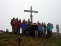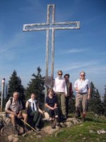 Um 7.30 Uhr sind wir (19 Personen), nachdem ich lange rumüberlegt habe, ob wir das ganze wegen der Wettervorhersage abblasen sollen, doch nach gutem Zureden von Michaela am Abend zuvor, mutig Richtung Marquartstein losgetigert. Unterwegs war es ziemlich grau und es hat auch geregnet. Im wolkenverhangenen Marquartstein an der Hochplattenbahn Talstation angekommen, sind wir um ca. 9.00 Uhr losmarschiert. Wir haben erfahren, dass an diesem Sonntag um 11.15 Uhr oben am Berg eine Messe stattfinden sollte. Also los. Unterwegs hat es dann auch zu regnen begonnen und ich habe mich entschlossen, auf der Forststraße zu bleiben. Ganz pünktlich wären wir zum Messebeginn um ca. halb zwölf oben an der Bergwachthütte angekommen, doch es hatten die meisten keine rechte Lust, zumal es gerade sehr finster war und auch ein wenig nieselte. So haben wir nach gemeinsamer Abstimmung den Gipfel versucht, der ja bei Nässe auch ziemlich schmutzig sein soll. Wir sind dann auch tatsächlich bis zum Gipfel hoch und es hat auch aufgehört zu regnen. Gesehen hat man allerdings nichts – von wegen Blick auf die Kampenwand und so. Nach der Gipfelbrotzeit sind wir wieder Richtung Tal und siehe da, schon beim Absteigen riss die Wolkendecke auf. Und wir sind noch oben bei der Piesenhauser Hochalm eingekehrt mit Blick auf Kampenwand, Hochplatte etc. Abwärts haben wir den schmaleren Weg durch den Wald gewählt, der dann wieder auf die Forststraße trifft. Nach ca. 2½ h Abstieg sind wir um halb fünf unten angekommen und waren ziemlich genau um 18.00 Uhr in Eggenfelden.
