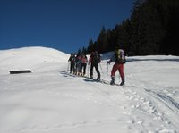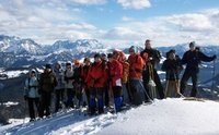Der Schneebichl vom Kaiserbachtal aus war das Ziel unserer Schneeschuhtour unter der Leitung von Reinhard Zelger. Bei bestem Bergwetter, dem Föhn sei Dank, war der Anstieg durch lichten Bergwald und die freien Flächen der Scheibenbühelalm zum Gipfel ein wahrer Genuss. Eine ausgiebige Gipfelrast bot Gelegenheit die herrliche Sicht auf den Wilden Kaiser und die umliegenden Berge bei Sonnenschein und blauen Himmel zu genießen. Beim Abstieg gab es noch manch spektakuläre Einlage in Form von Stürzen und Rutschen im weichen Schnee, was eine Riesengaudi für alle war. Eine zünftige Einkehr im Gasthof Griesenau beendete die Tour.