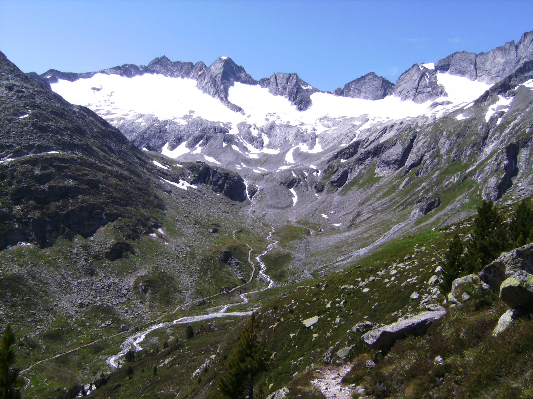 In der Zeit, wo in unserer Gegend ein Unwetter verbunden mit Blitz, Donner und Wolkenbruch dem nächsten folgte, nutzten 13 Gipfelaspiranten das vor Ort herrschende ideale Bergwetter aus. Das Bergsteigerdorf Ginzling war die letzte Ortschaft, bevor es ins weitgehend unberührte Floitental ins Herz der Zillertaler Bergwelt hinein ging. Am Ufer des Wildbachs entlang spazierten wir über flache Weideböden. Stück für Stück baute sich vor uns das zackige Gipfelreich des hinteren Mörchenkamms im Westen und das Löfflermassiv im Osten über das Floitenkees auf. Ein paar kleine Steigungen bei einer Gesamtstrecke von ca. 7 Kilometer waren keine wirkliche Herausforderung an diesem Tag. Dann endete kurz hinter der Baumgartenalm (1.571 m) der komfortable Fahrweg zu einem rauhen Talschluss. Ein Stück wanderten wir auf einem Steig noch am Bachbett entlang, dann steht der saftige Anstieg zur Greizer Hütte (2.226 m) bevor. Von der Hütte hat man ein beeindruckendes Panorama auf die Gletscherwelt des Floitenkees mit seinen Gipfeln wie Schwarzenstein (3.368 m), Tribbachkopf (3.267 m) und natürlich unserm Tourenziel: dem Großen Löffler.