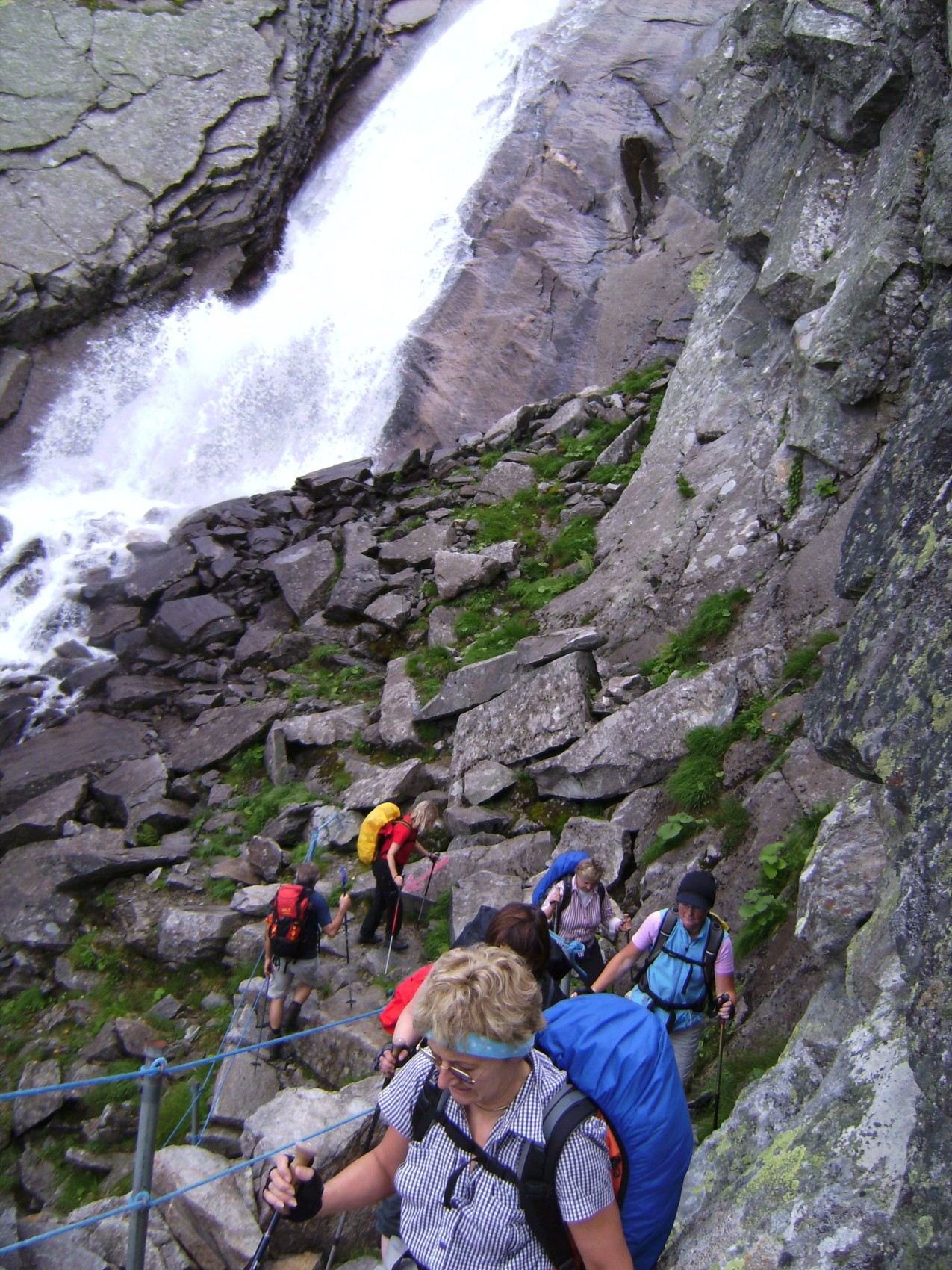 Nachdem die Tour am eigentlichen Termin aufgrund des schlechten Wetters nicht stattfinden konnte, waren die Wetterprognosen für dieses Wochenende insgesamt gut. Bevor wir aber richtig los starten konnten, brachte uns der Bus nach Königsleiten. Entlang des Speicherstausees Durchlaßboden ging es nach Finkau. Leider holten uns die dicken, schweren Wolken ein, die sich über uns ausregneten. Doch dieser Spuk war bald vorbei und so konnten wir uns wieder auf die landschaftlichen Glanzpunkte konzentrieren. Vorbei an der tosenden Leitenkammerklamm ging es in mäßigen Steigungen bis zum Talschluß, über dem sich die Reichenspitzgruppe aufbaut. Über eine Randmoräne erreichten wir das Klamml und auf einer gut gesicherten Steiganlage, weiter über ausgedehnte Gletscherschliffe schließlich die bestens bewirtschaftete Zittauer Hütte. – Noch war es frisch, als wir am Morgen am Nordufer des unteren Gerlossees vorbei zum Karboden des Oberen Gerlossees aufstiegen. Die Sonne wärmte uns rasch auf dem Weg Richtung Rosskarscharte und über einem Blockgrat erreichten wir den Gipfel des Rosskopfes. Zurück an der Schafte musste ein kurzer steiler Abstieg bewältigt werden, bevor es wieder gemütlicher zur Rosskarlache hinab ging. Doch bevor der Rainbach überquert werden konnte, waren noch steile Grashänge zu queren. Als nächstes Ziel peilten wir das Krimmler Tauernhaus an, um dort eine ausgiebige Pause einzulegen, bevor uns der weitere Weg zu den bekannten und spektakulären Krimmler Wasserfällen führte. Entlang dieser sich ins Tal stürzenden Wassermassen erreichten wir schließlich unsere Autos. Zusammenfassend können wir ein gelungenes Wochenende, gespickt mit landschaftlichen Glanzpunkten, etlichen Höhen- und auch Kilometern, ansprechende Wege und einer sehr gute Hütte in unser Bergbuch eintragen.