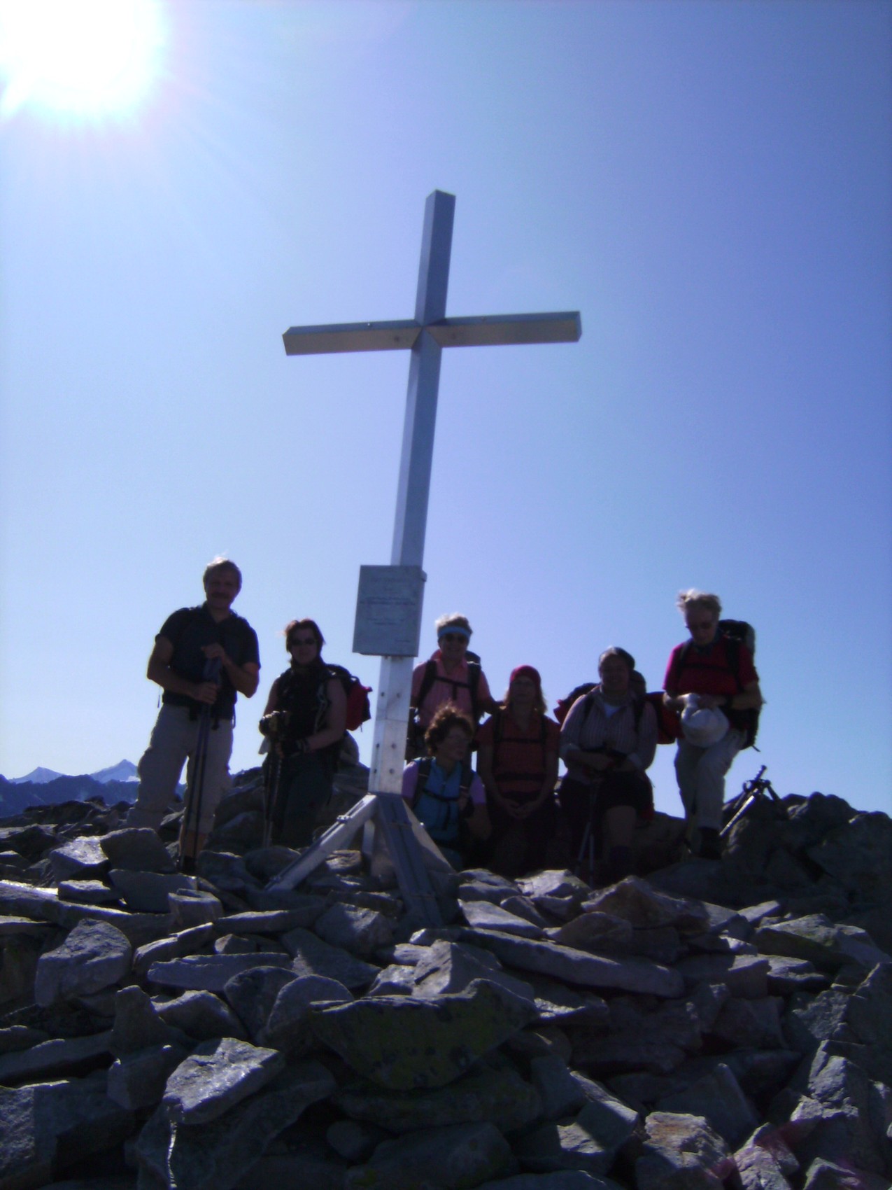 Das Wetter war prächtig, so konnte diese Tour wie geplant am 19. + 20. August stattfinden. Am Naturfreundehaus Kolm Saigurn vorbei über den Barbarawasserfall gings zum Naturfreundehaus (2.176 m). Hier machten wir Mittagspause. Herrmann schaffte im Schatten ein 10 Minuten Nickerchen, so gings erfrischt weiter zur kleinen Rojacherhütte (2.718 m), wo wir eine Trink- bzw. beim Hager Fritz eine Kaffee-Pause eingelegt haben. Ab hier wurde es Alpin und es ging an Drahtseilen und kleinen Leitern immer am Grad aufwärts. Schön langsam merkte man die Höhe und man kam ins Schnaufen und Schwitzen. Kurz vorm Gipfel gings die letzten Meter am Gletscher aufwärts. Noch um 18 Uhr konnte man im Shirt und kurzer Hose das wohlverdiente Gipfelbier hinter der Hütte genießen, mit direktem Blick zum Großglockner. Alle genossen den großartigen Rundumblick und später beim Abendessen den Sonnenuntergang. Am nächsten Morgen gingen wir um 9 Uhr über den Gletscher zurück. Fast alle nahmen noch Proviant für die Rojacherhütte mit, da wir Tags zuvor die hübsche Tochter der Hüttenwirtin kennen gelernt hatten, die um 8.00 Uhr schon am Gipfel war, um 20 Liter Saft zurück zu tragen. Herbert und Fritz machten einige gute Fotos von dieser Tour, die allen sehr gefallen hat.