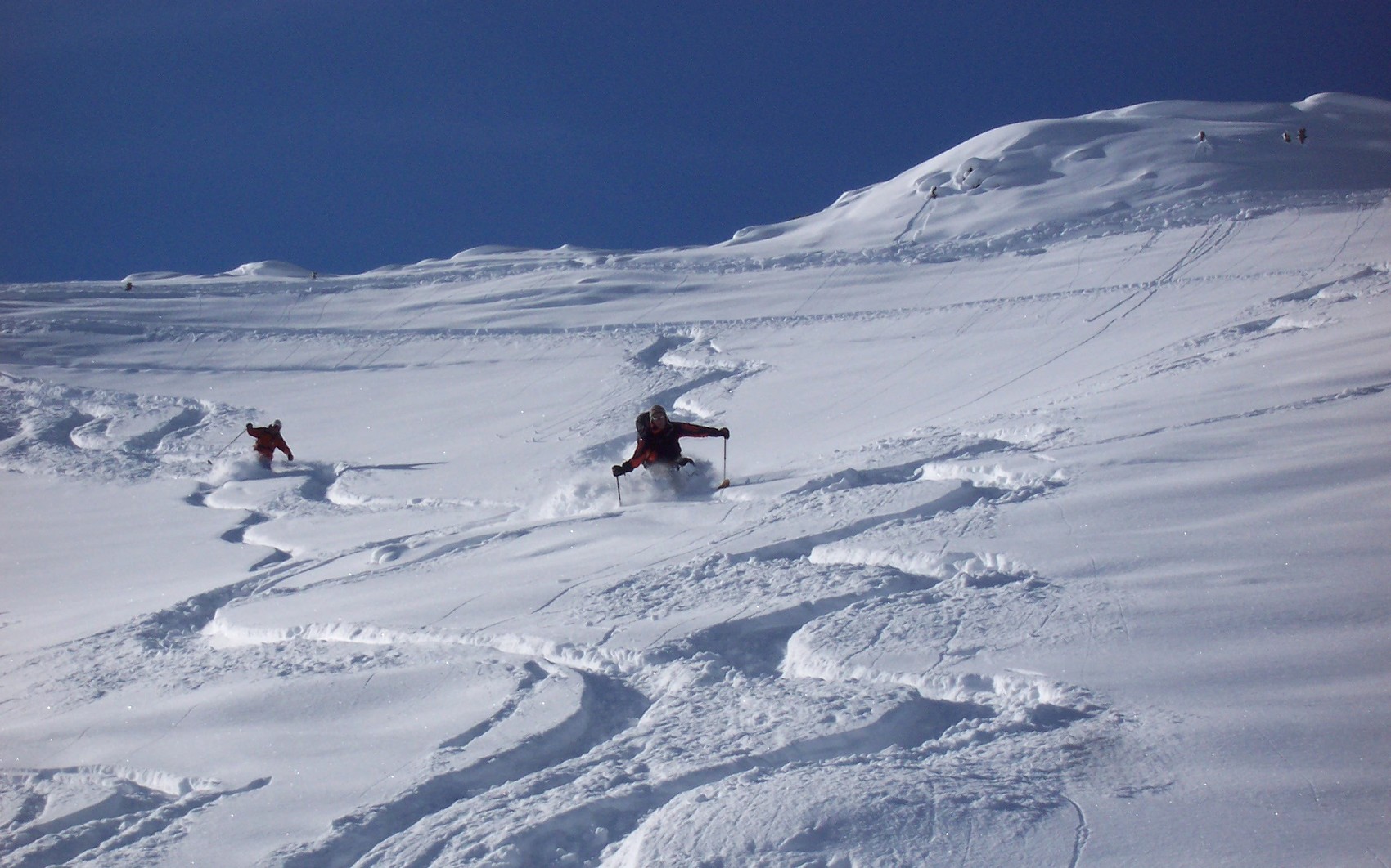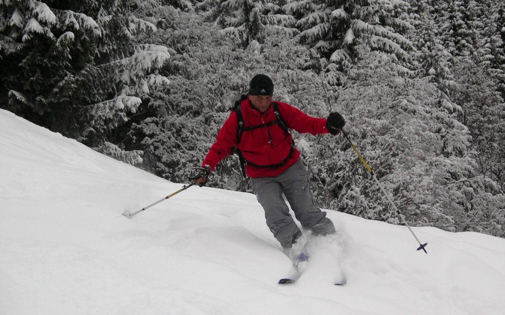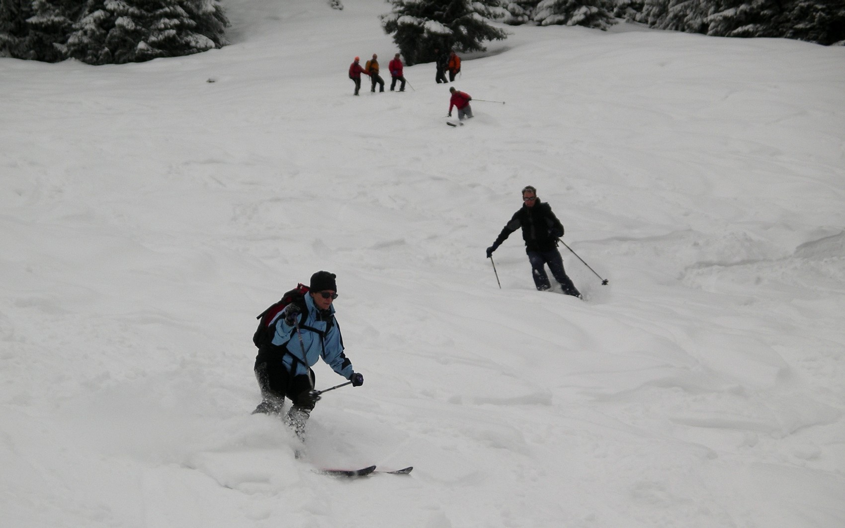 Als Zuckerl folgte dann noch eine Abfahrt im staubenden Pulverschnee, der an den legendären Champagner Powder der Rocky Mountains erinnerte.