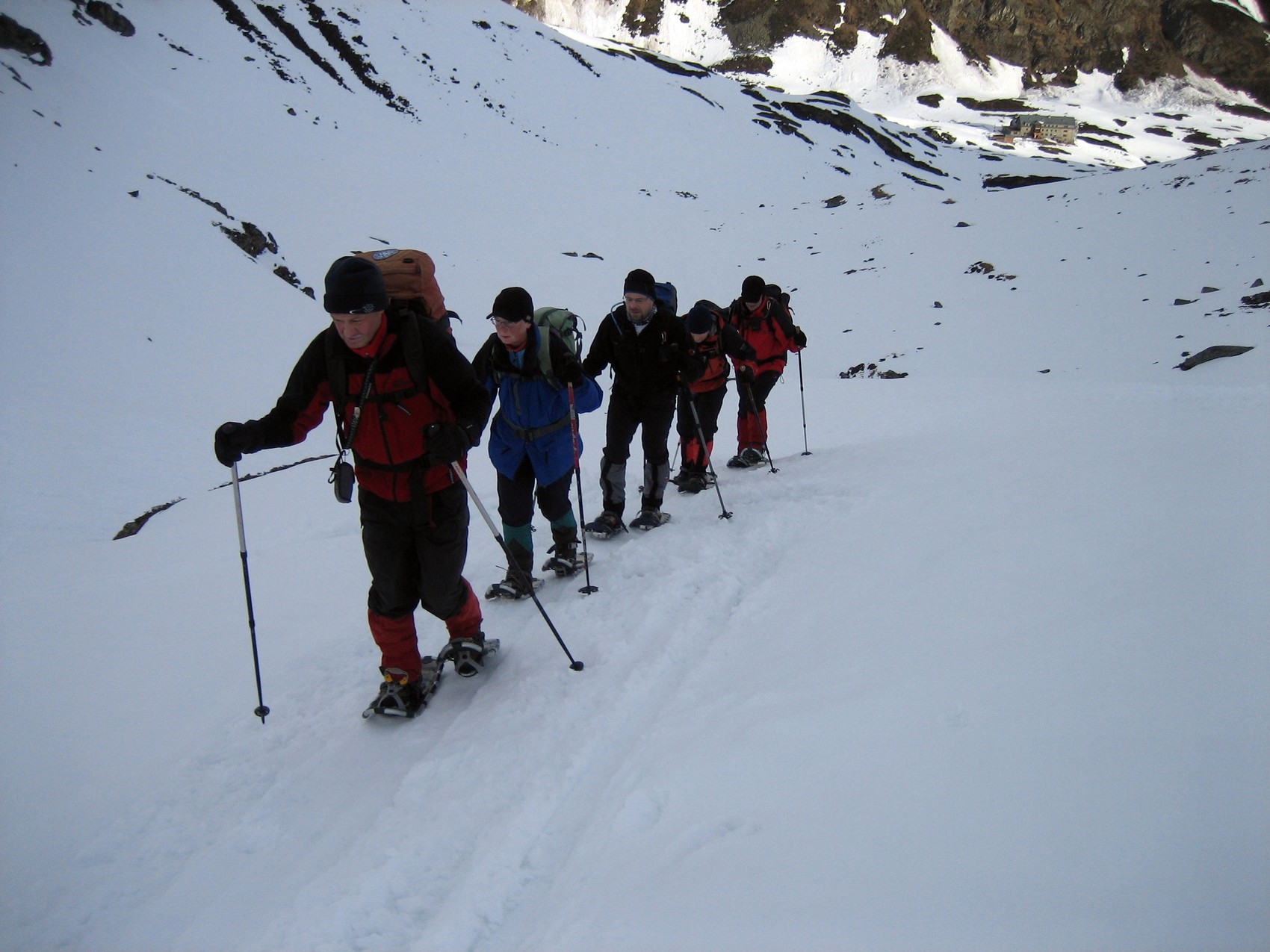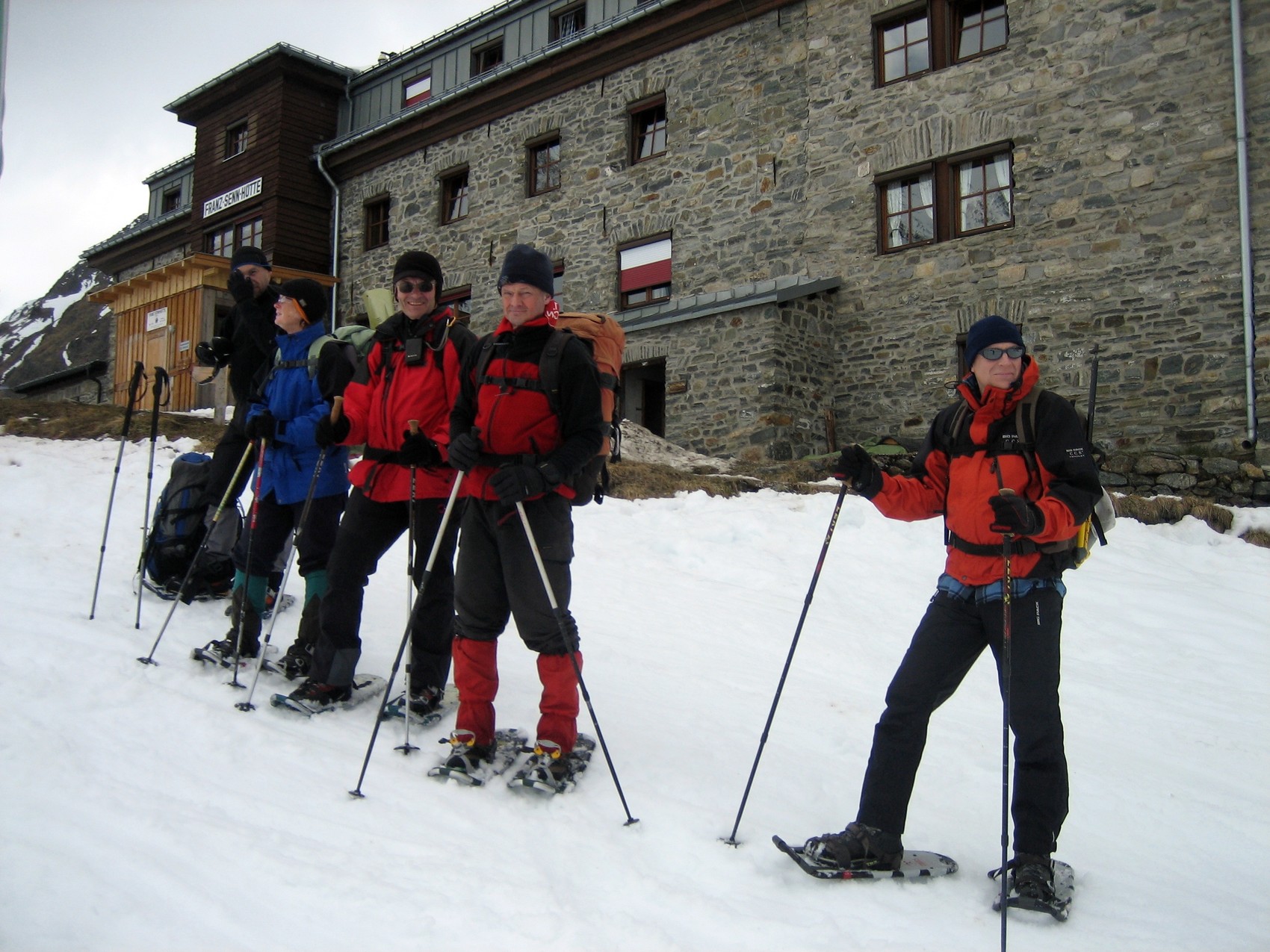 Mit einer Schneeschuh-Hochtour verabschiedeten wir unser diesjähriges Winterprogramm. Bei der letzten Unternehmung in der Wintersaison, ging es ins tief verschneite Stubaital. Die sechs Wintersportler sind bei der abwechslungsreichen Tour und bei schönstem Bergwetter voll auf ihre Kosten gekommen. Nachdem am Samstag der Hüttenanstieg zur Franz-Senn-Hütte (2.147 m) absolviert wurde, stand am Sonntag die Besteigung der Inneren Sommerwand auf dem Programm. Mit den Schneeschuhen an den Füßen, wurde ein Weg durch die tief verschneite Winterlandschaft gespurt. Für die letzten 300 Höhenmeter über den Sommerwandferner haben wir die mitgeführte Gletscherausrüstung anlegt. Ab der Kräulscharte (3.096 m) wurde der Gipfel über leichtes Blockgelände bestiegen. Als Belohnung wartete eine grandiose Aussicht auf die Bergwelt der Stubaier Alpen.