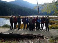 Dieses Mal stand der Bayerische Wald auf dem Programm, um den diesjährigen Bergsommer zu beschließen. Herbstlich zeigte er sich und fast schon etwas geziert, da wir ihn im Sommer nicht oft besuchen. So ließ er uns vom Gipfel keine Rundsicht genießen, vielmehr legte er eine dichte Nebelschicht darüber. Aber man merkte, dass er (der Waldgeist) es nicht wirklich ernst meinte. Wir stiegen eine Stunde bergab in Richtung kleiner Arbersee und konnten den Gipfel des Großen Arber nun bei Sonnenschein bewundern. Der 1-stündige Aufstieg zur Chamer Hütte war nochmals steil und kostete uns etwas Puste, aber die durch den SC Bodenmais bewirtschaftete Hütte bot uns Speis und Trank zur Stärkung. Der Abstieg führte, wie schon der Aufstieg, durch bunte Mischwälder, vorbei an den imposanten Rißlochwasserfällen zurück nach Bodenmais.