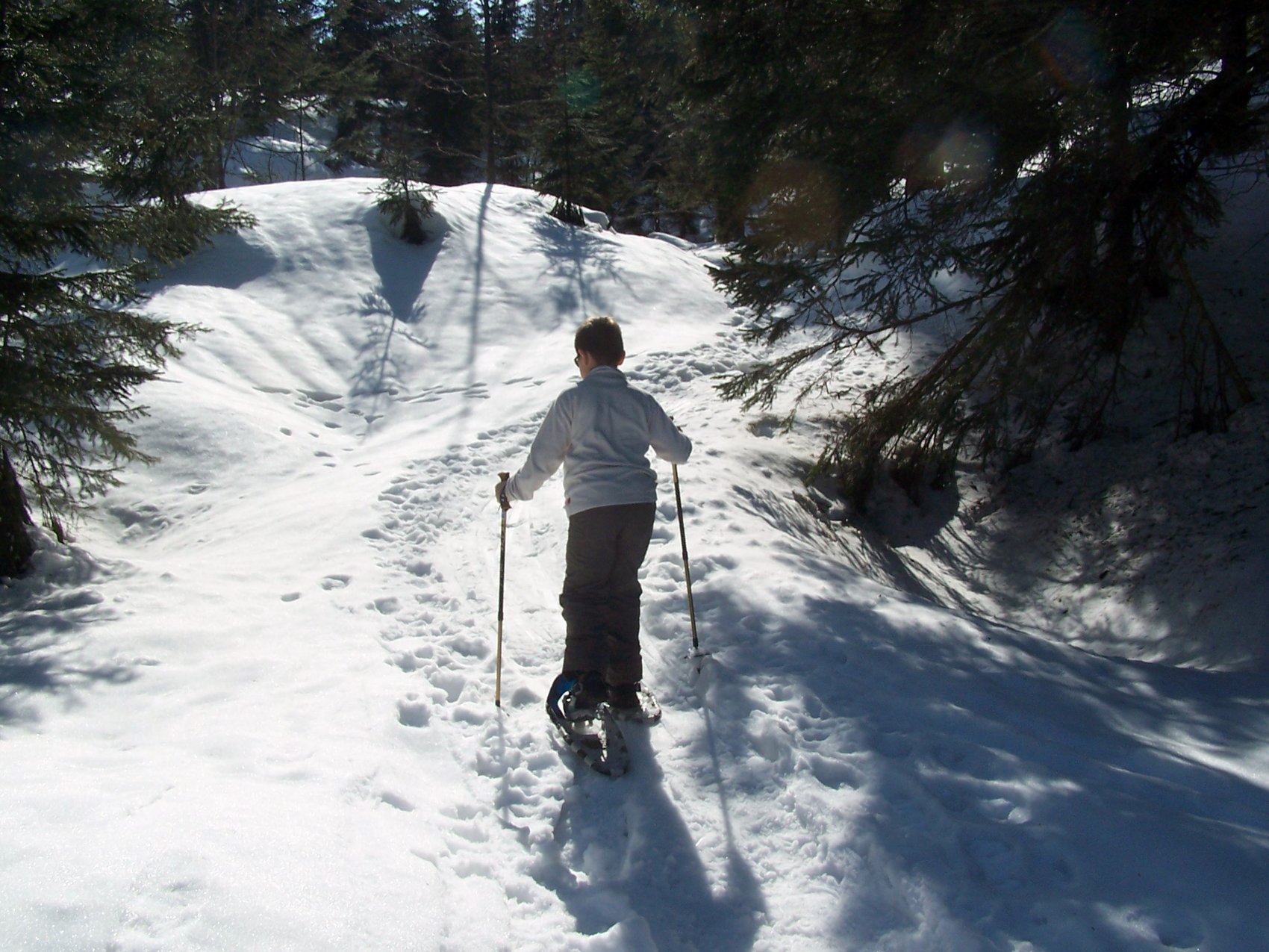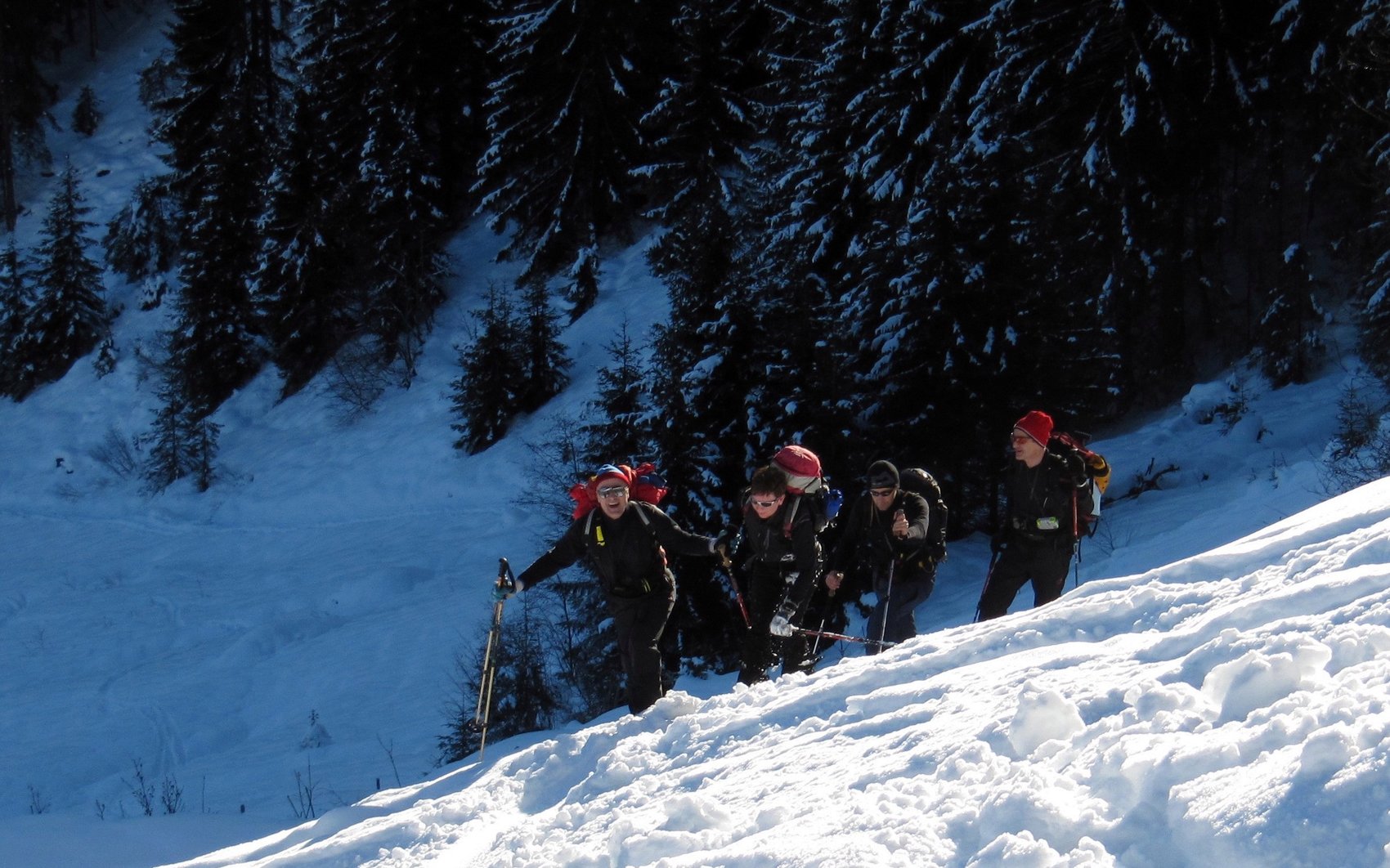 Nach fünf Minuten gab’s bereits die erste Diskussion – mit den Rodlern, die uns nicht auf der hergerichteten Rodelstrecke weitergehen lassen wollte. Letztenendes hatten sie aber ein Einsehen und ließen uns noch vor dem ersten Schlittenfahrer durch.