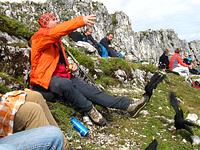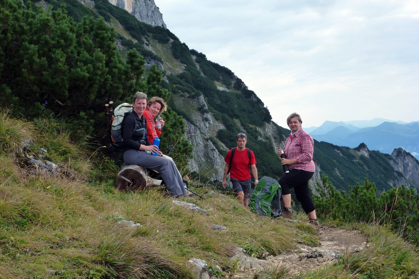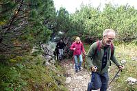 Statt von Seegatterl wählten wir den Aufstieg vom Heutal aus, um über die Finsterbachalm den halbstündigen, aussichtsreichen Grat der Dürnbachschneid zum Gipfel genießen zu können. Tiefblicke zu Loder- und Weitseen, gegenüber die Hörndlwand, im Osten das Sonntagshorn und südlich die Loferer und Berchtesgadener Alpen. Nach ausgiebiger Gipfelbrotzeit folgte der Abstieg nach Süden zur Traunsteiner Hütte, wo man sich Kaffee und Kuchen bzw. Bier und Brotzeit schmecken ließ. Auf dem vom Langlaufen im Winter her bekanntem Weg ging’s ins Heutal zurück. In guter Laune und ohne Regen erreichten wir unseren neuen Bus, den Fritz Hager sicher nach Eggenfelden zurückbrachte.