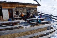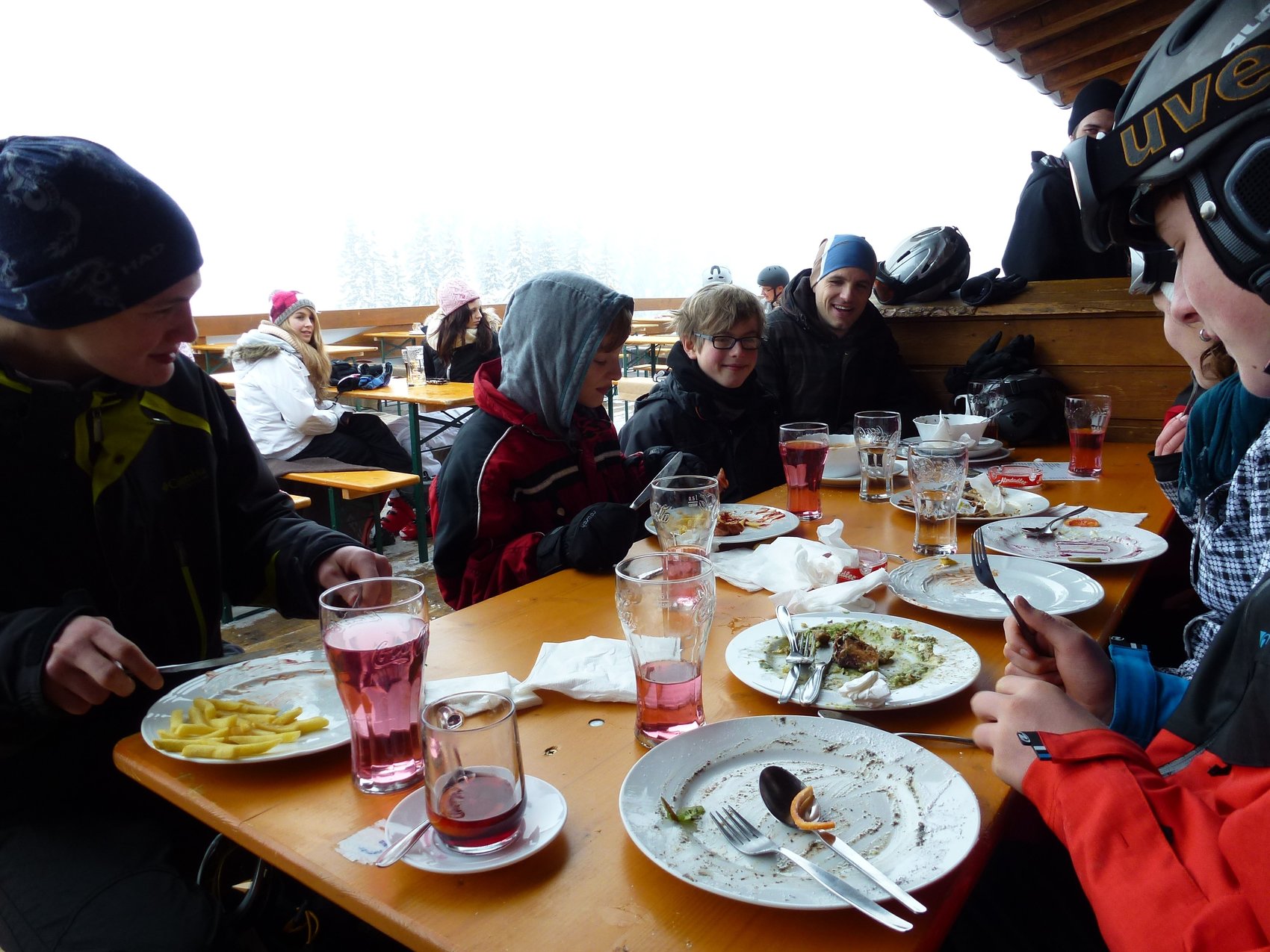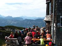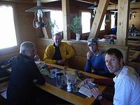 Um kurz nach 8.00 Uhr auf der Hütte gab es das zweite Frühstück. Der sonntägliche Kaffee und Kuchen konnte bei schönem Wetter zu Hause auf der Terrasse eingenommen werden.