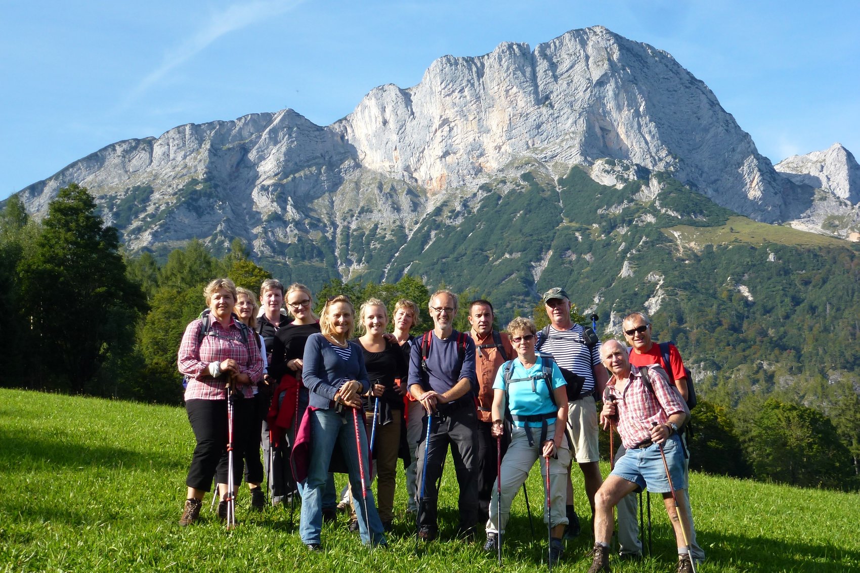 Das Verschieben der Tour von Samstag auf Sonntag hat sich gelohnt. Bei bestem Wetter konnten wir so die Wanderung von Hintergern auf dem Stöhrweg und Leiterl auf den Berchtesgadener Hochthron durchführen. Am Gipfel bot sich den Teilnehmern ein herrlicher Rundblick zum Salzkammergut, Dachstein, Tennengebirge und den umliegenden Berchtesgadener Bergen. Nach einer gemütlichen Kaffeepause auf der Sonnenterrasse des Stöhrhauses machten wir uns wieder an den Abstieg.