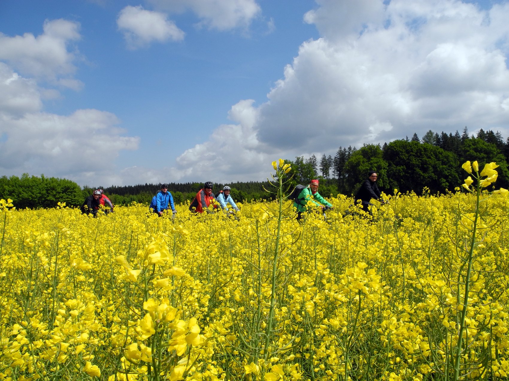 Die Trekkingradgruppe radelte die Tour in den nördlichsten Zipfel des Landkreises auf Nebenstraßen, Feld- und Waldwegen, vorbei an Falkenberg, Oberhöft, Diepoltskirchen, den Rimbach entlang nach Malgersdorf. Interessant war die Pause am alten Schloß, dieses ist renoviert und macht Werbung für „Bike und Bed“. Weiter nach Arnstorf und nach dem langen, steilen Anstieg zum Ziel in den urigen Biergarten des Bauerngasthauses. Gut gestärkt ging es auf dem Bockerlbahnradweg bergauf und -ab bei Gegenwind nach Schönau ins Schloßcafe. In lustiger Atmosphäre schmeckte Kaffee und Kuchen und nach ca. 70 km waren wir wieder in Eggenfelden.