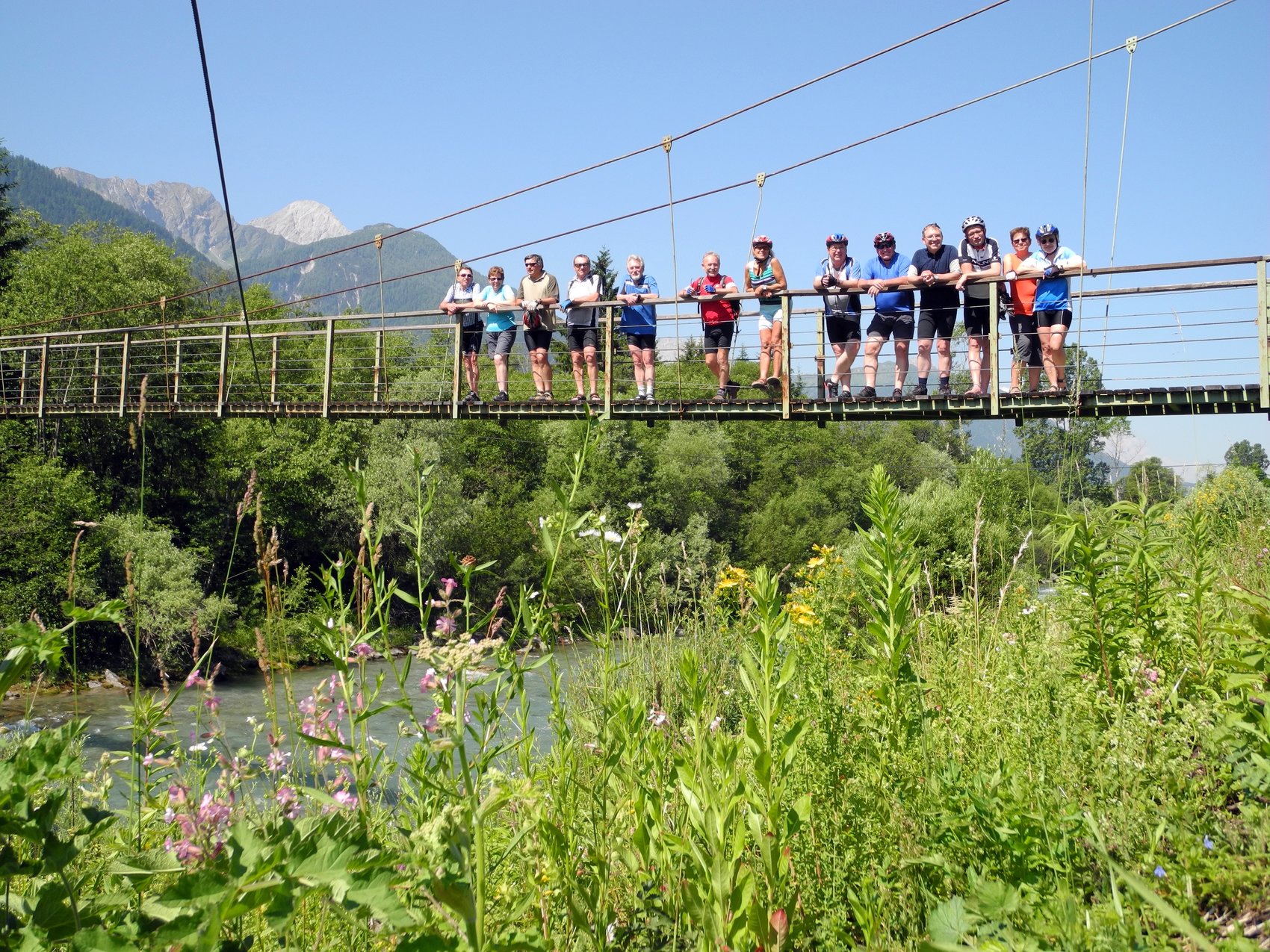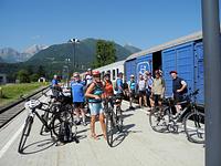 17.06.2012 — Um 6.15 Uhr hieß es Antreten zum Frühstück, denn um 7.00 Uhr ertönte die Pfeife vom Langbauer Franz zur Abfahrt zum Bahnhof Villach, wo um 7.53 Uhr der Zug abfuhr und die Radler nach Kötschach-Mauthen beförderte. Hier ist der Beginn des Karnischen Radweges durch das Gailtal. Anschließend an den Besuch der Garnitzenklamm bei Hermagor wurde beim Klammwirt eingekehrt. Dort erlebte die Gruppe einen negativen Höhepunkt von Gastfreundschaft eines einzelnen gestörten Kellners. Im freundlichen Eiscafe in Nötsch war die Welt wieder in bester Ordnung. Die Ausblicke auf die Karnischen Alpen und den Dobratsch gegenüber hätten aus einem Werbeprospekt stammen können. Der letzte Teil der Tour führte fast 10 km lang durch einen angenehm kühlen Wald, bevor es über Finkenstein am Faaker See nach 106 km zurück nach Drobollach ging. Der Gailradweg war geil. Nach dem Abendessen verfolgten die meisten das EM-Spiel Deutschland gegen Dänemark (2:1). Den Wettbewerb, mit welchem Ergebnis das Spiel enden wird, gewann die Eggersdorfer Elfriede und kassierte die Siegprämie.