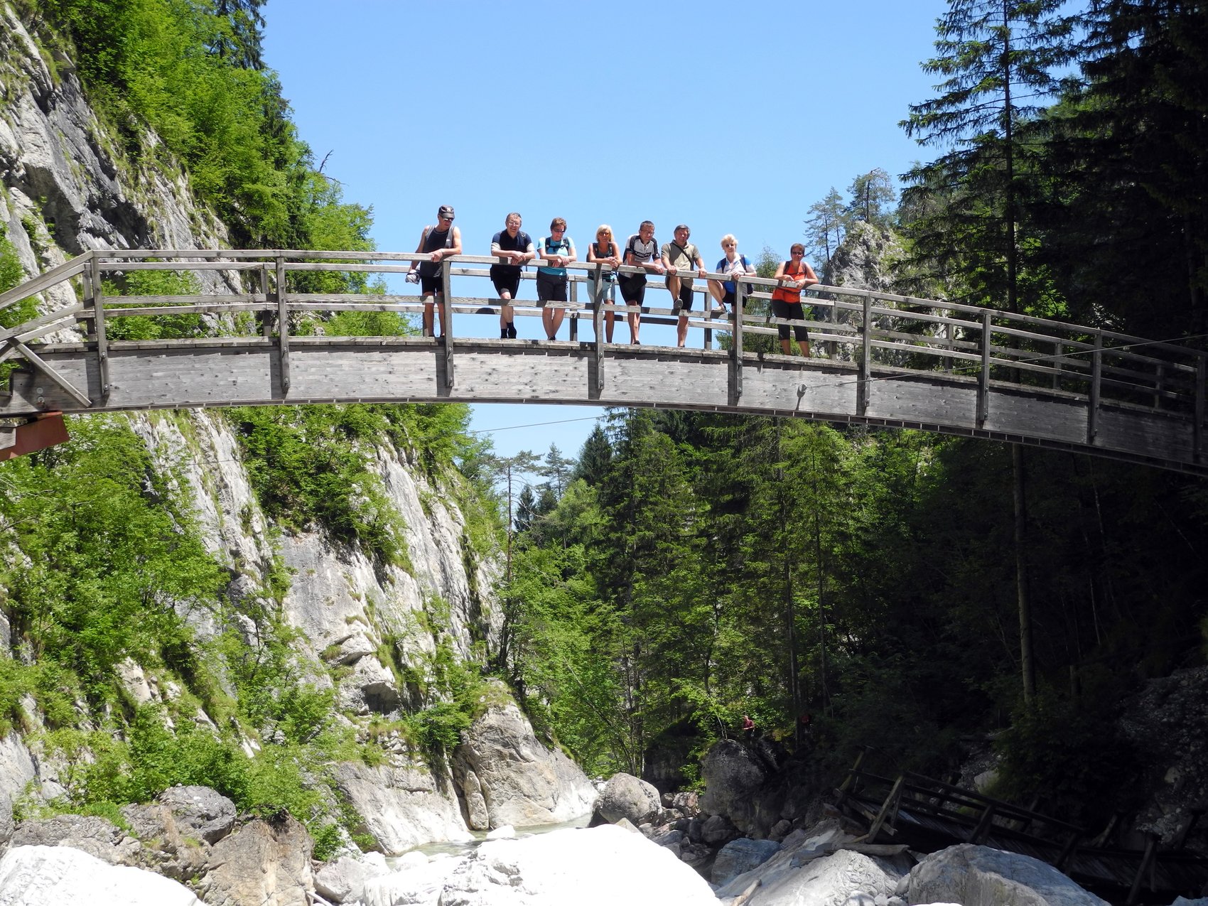 Bei herrlichem Wetter stießen wir wieder auf den Aufstiegsweg, um auf diesem wieder abzusteigen. Von Blasmusik auf der Wagneralm begleitet erreichten wir alle gut erhalten den Parkplatz.