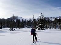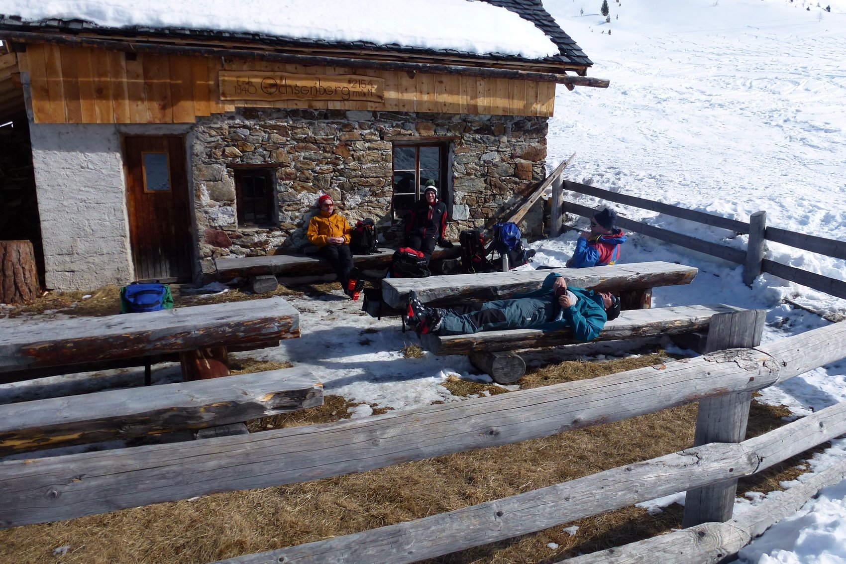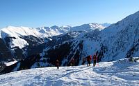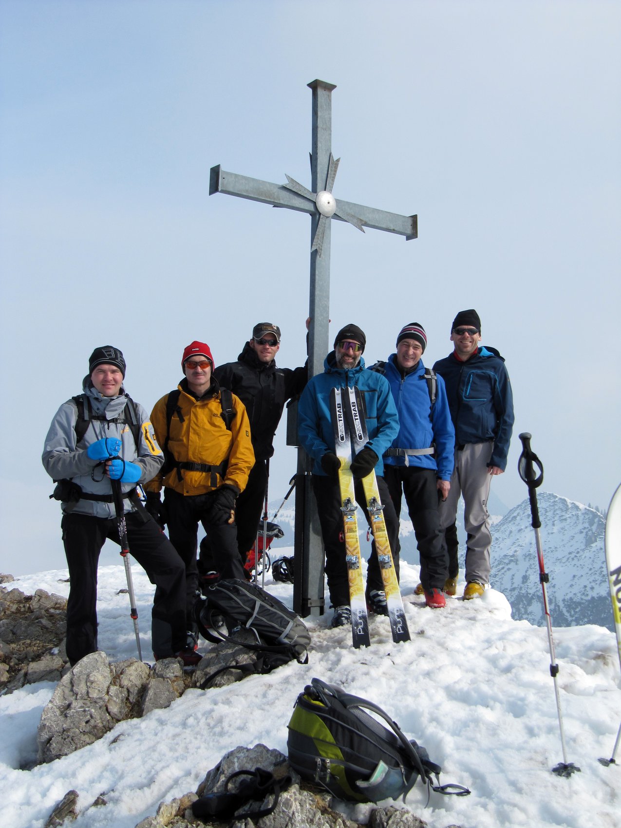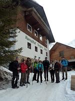 Am Parkplatz im Lueggergraben bei −20°C war Schnelligkeit angesagt – beim Anziehen der Handschuhe und Skischuhe. Nach Kontrolle der LVS-Geräte ging es gemächlichen Schrittes taleinwärts, um den Körper an die Kälte zu gewöhnen. Über die äußere Mareitalm führte uns der Anstieg über verschneite Hänge zum Gipfel. Dank der doch schon kräftigen Februarsonne war die Kälte erträglich. In einer geschützten Mulde am Gipfel schaufelten sich die Teilnehmer geeignete Sitzplätze, um die Gipfelbrotzeit wie auf einer Sonnenterrasse zu genießen. So gestärkt war die Abfahrt über die freien Wiesenhänge bei herrlichem Pulverschnee ein wahrer Genuß. In zünftiger Runde fand der Tag beim Après-Ski seinen Ausklang, gab es doch so manche ungewollte Einlage der beiden Skitourenneulinge aber auch der alten Hasen aufzuarbeiten.
