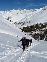 Optimale Schnee- und Wetterbedingungen fanden die Teilnehmer der Skitourentage im Vinschgau vor. Aufgrund der schlechten Schneesituation in tieferen Lagen entschieden wir uns kurzfristig für einen Quartierwechsel ins höher gelegene Langtaufers.
